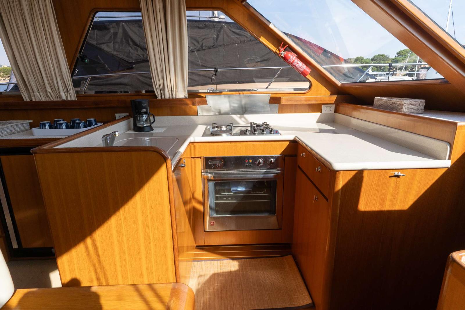 Coin cuisine équipé faisant face au poste de pilotage.