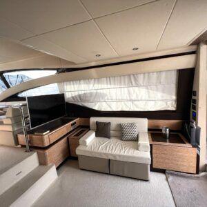 Conçu pour offrir confort et praticité, l'Azimut 60 est entièrement équipé pour des navigations exceptionnelles. Son hardtop avec sections transparentes accentue la clarté intérieure, conférant au yacht une sensation d'espace et de légèreté. De plus, la présence d'une cabine équipage permet à votre personnel de service de fonctionner en toute discrétion, vous laissant profiter pleinement de votre croisière sans interruption.