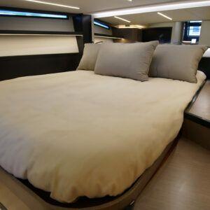 A l'intérieur, le yacht offre un environnement relaxant avec des cabines confortables et des espaces ouverts. La cabine du propriétaire est équipée d'un lit king-size, tandis que les cabines des invités offrent une certaine flexibilité pour répondre à différents besoins. L'intérieur intègre des solutions de rangement intelligentes pour garantir un espace propre et organisé.