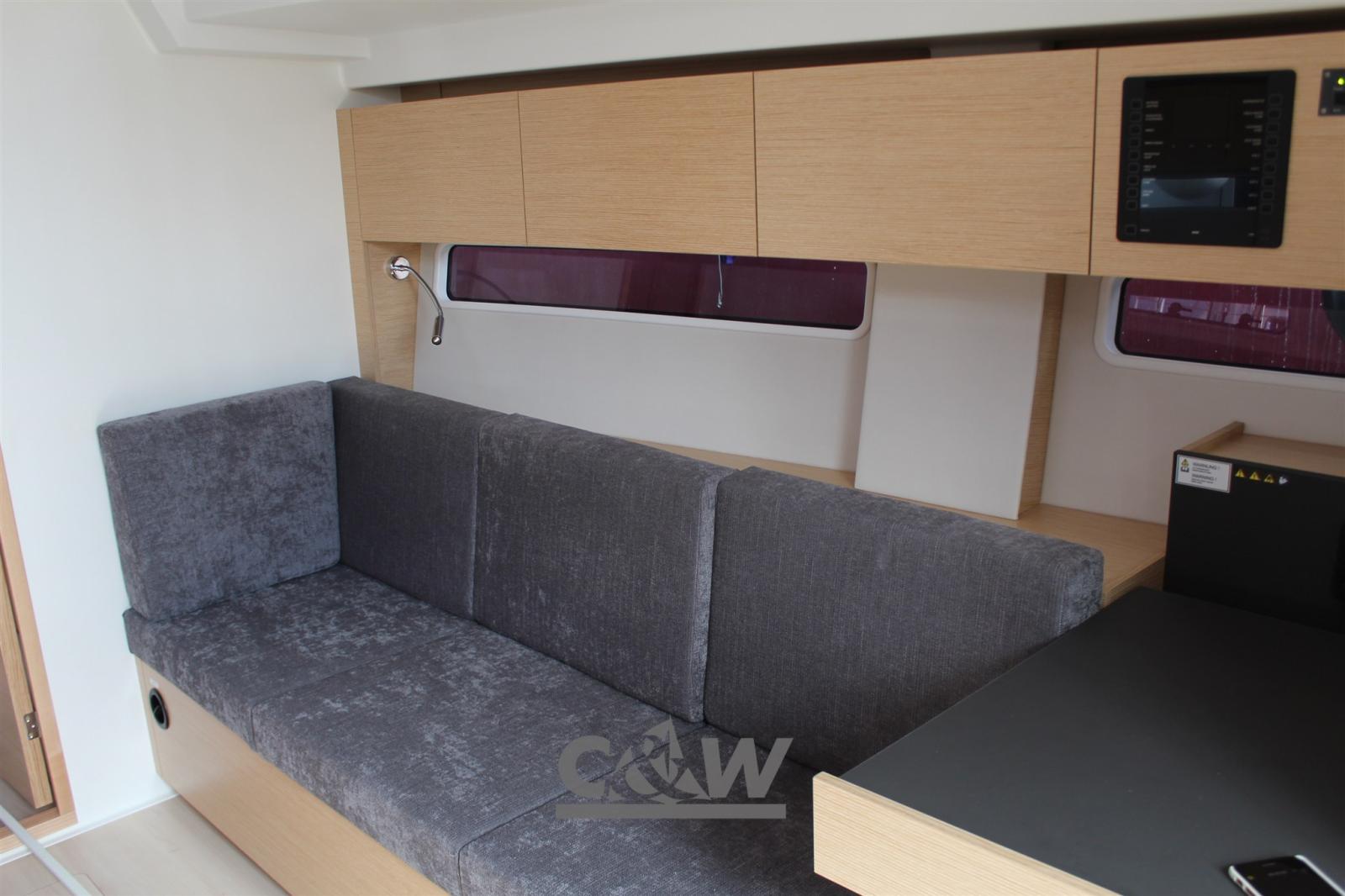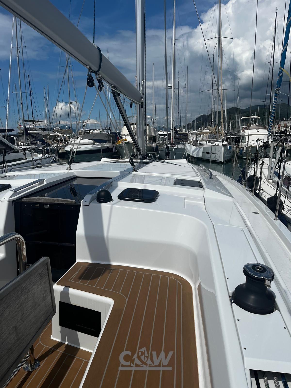Ancre (16kg + 30m), Eau sous pression, 4 Batteries (1x90Ah motore + 2x160Ah servizi + elica di prua), Chargeur de batterie (Mastervolt 35A), Douche de cockpit (calda e fredda), Double barre à roue, Propulseur d'étrave (Quick con batteria dedicata), Plateforme arrière, Pompe de cale automatique, Pompe de cale manuelle, Cockpit en teck (sintetico), Prise de quai, Guindeau électrique (1000W), Gréement monotoron, 2 table de cockpit, 4 Winch (Lewmar 45 ST EVO), Windex.
