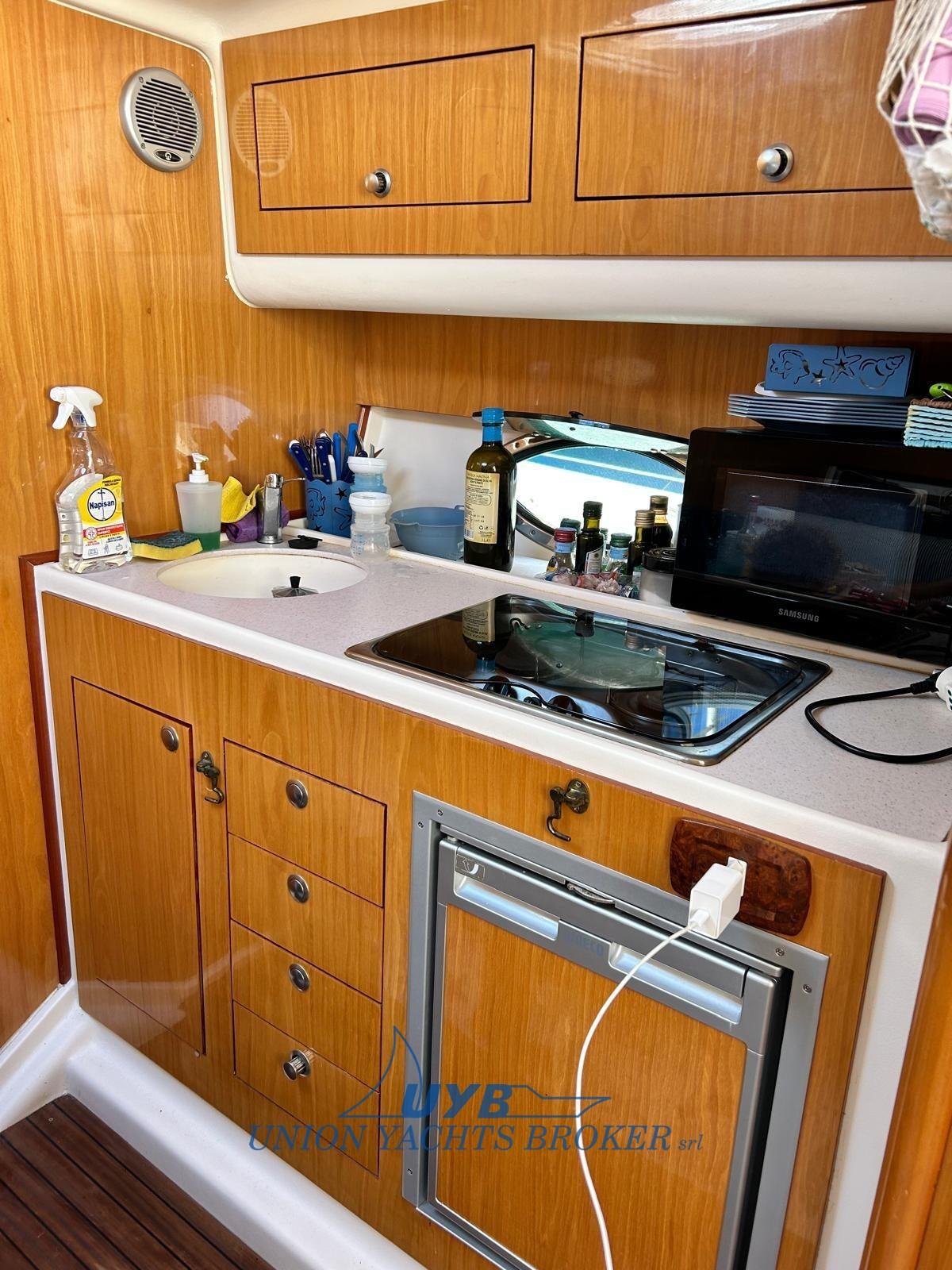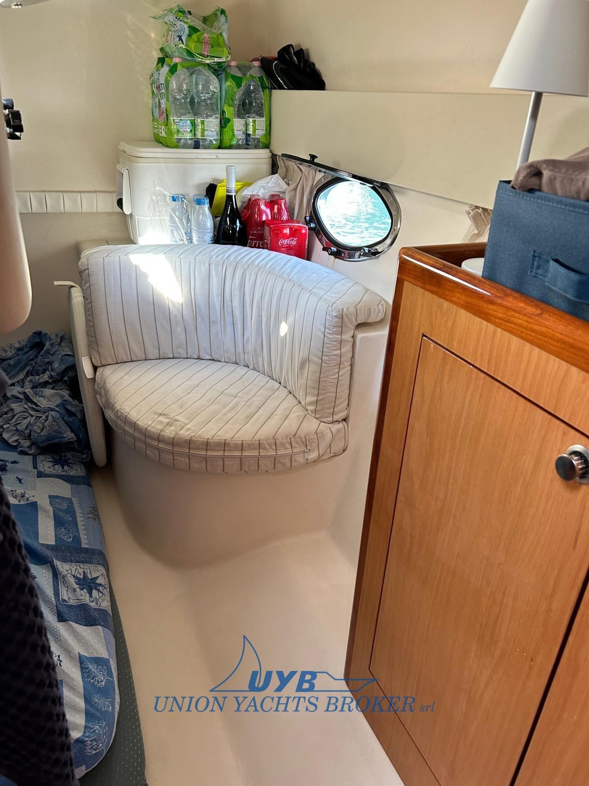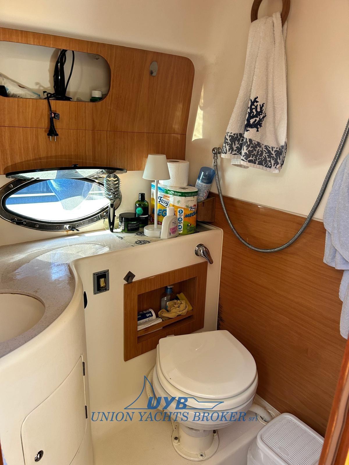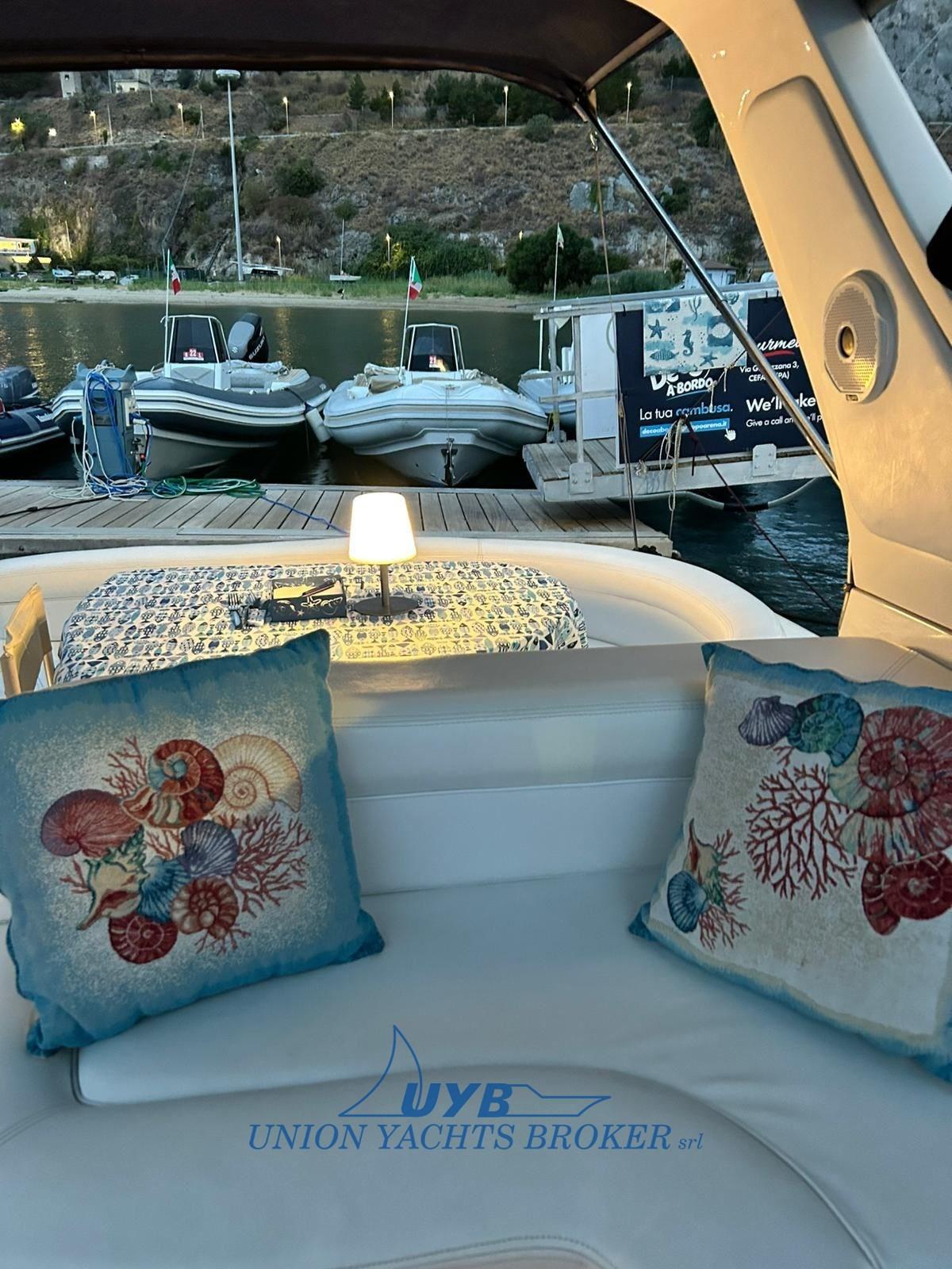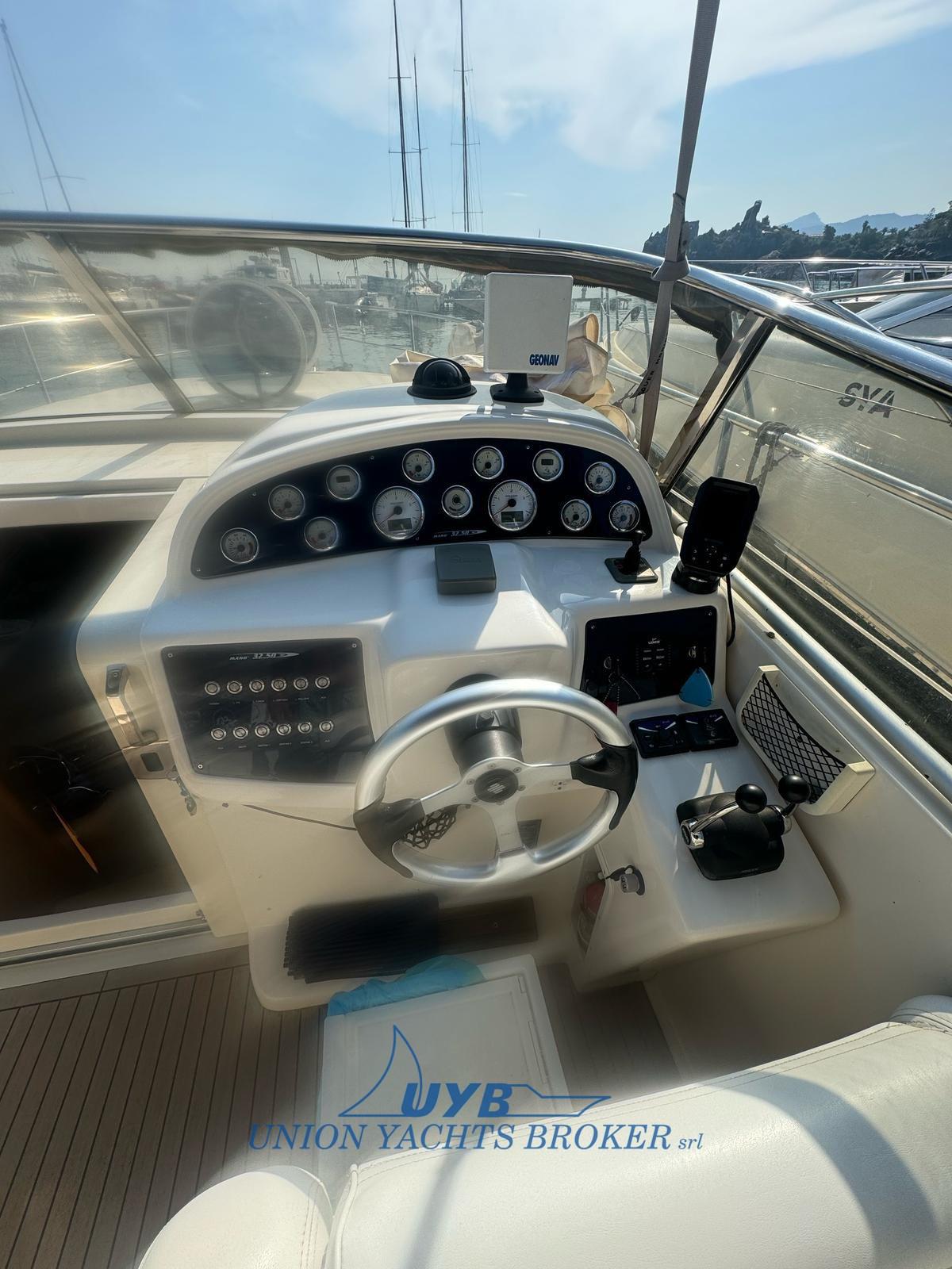 Installations : Gps/eco, manettes des gaz électroniques avec système evc, propulseur d’étrave, climatisation, câble 220 avec chargeur de batterie, coussins complets, auvents complets, réfrigérateur double (intérieur et extérieur), évier, toilettes électriques séparées, treuil guindeau avec compteur rapide, ouverture de la porte de la salle des machines déplacée électriquement, chaudière, teck complet.