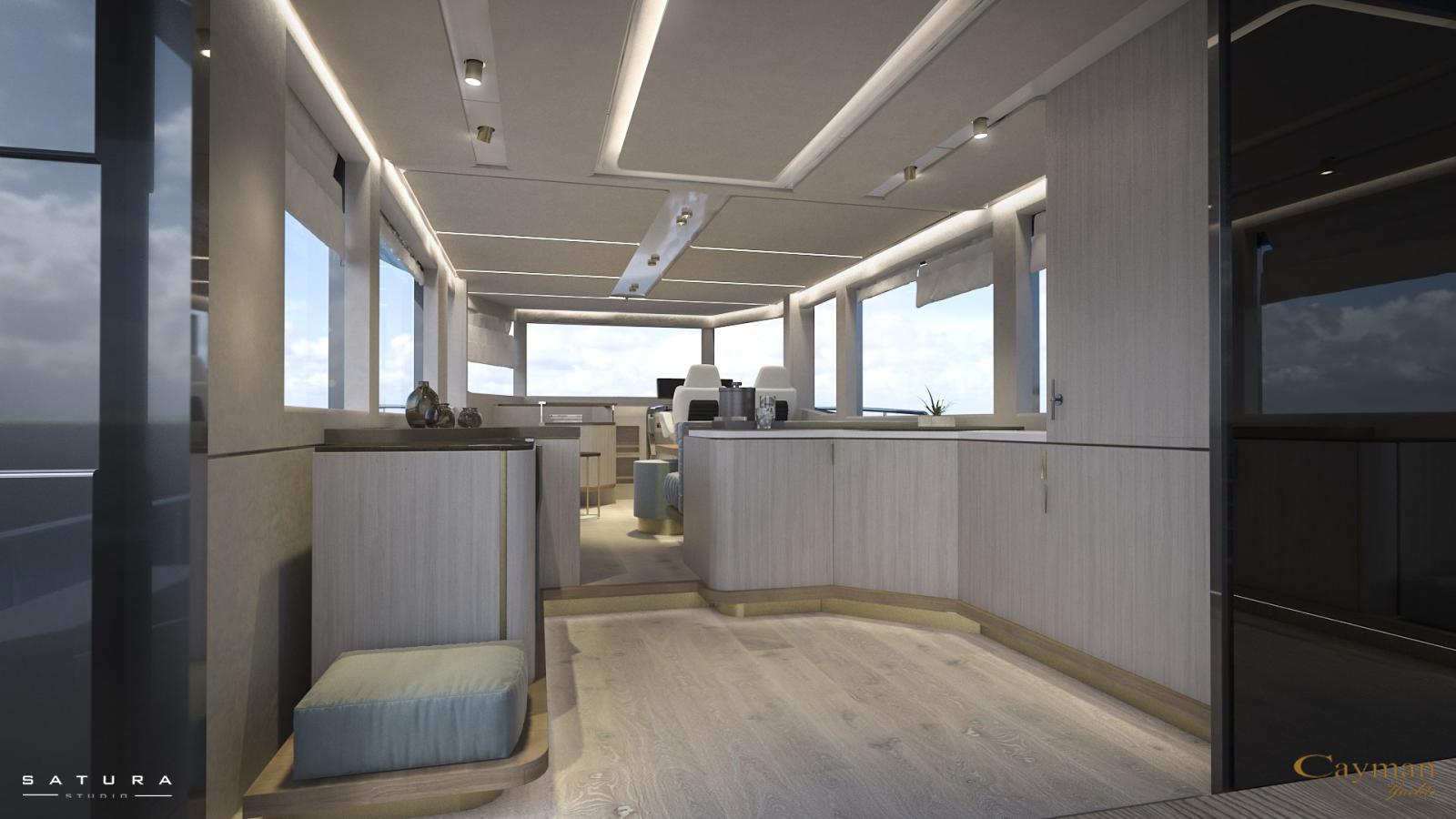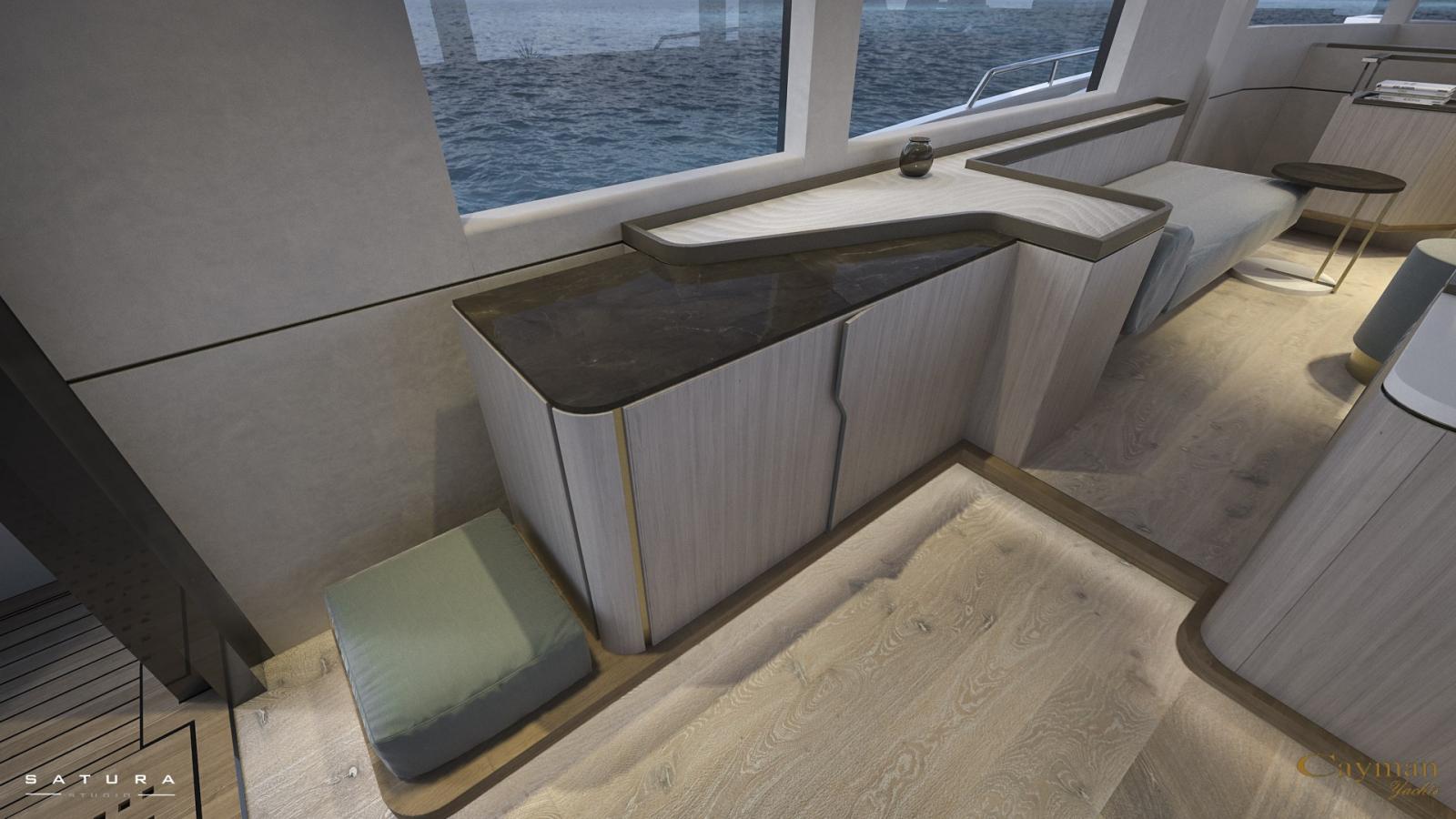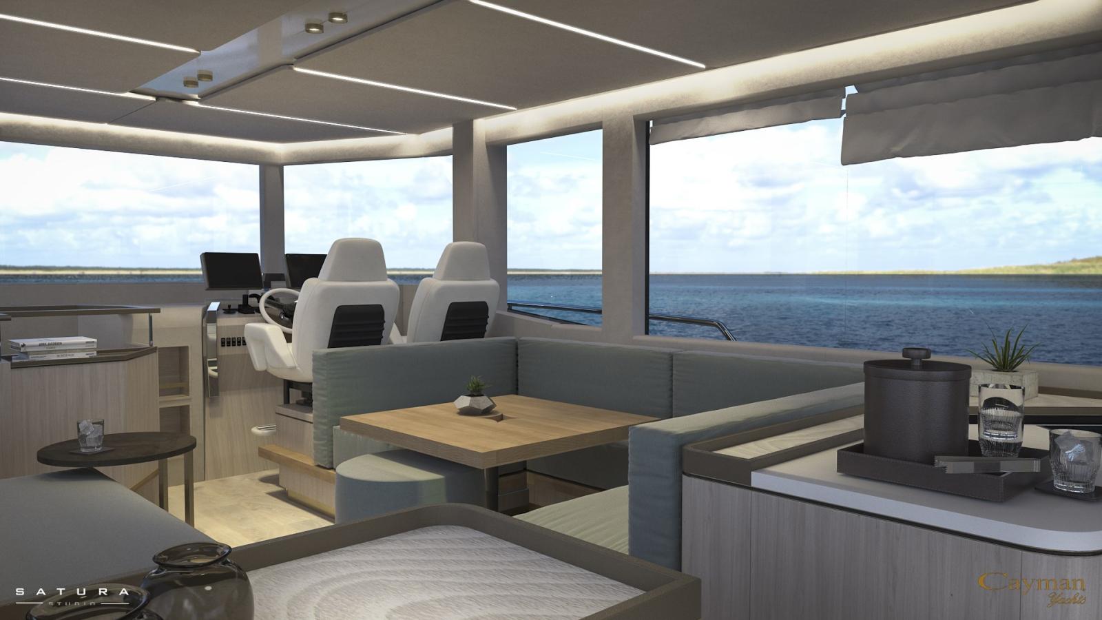 Alarme moteur, Alarme de pompe de cale, Eau sous pression, Passavant en teck, Douche de cockpit, Flaps électriques, Extincteur(s) fixe(s), Éclairage de courtoisie, Spots sous-marins, Pompe de cale automatique, Pompe de cale manuelle, Porte latérale, Prise de quai, Guindeau électrique, table de cockpit, Winch électrique arrière, Winch électrique avant.