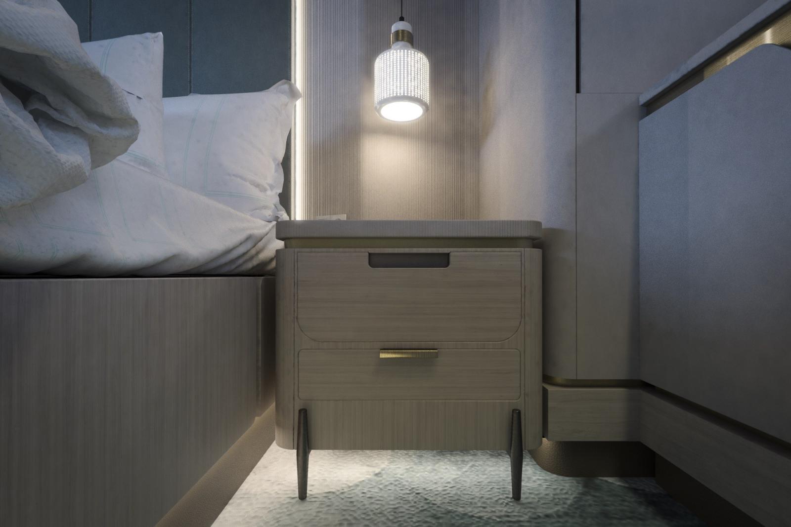 VIP CABINA - Lit double avec matelas et tiroirs.
