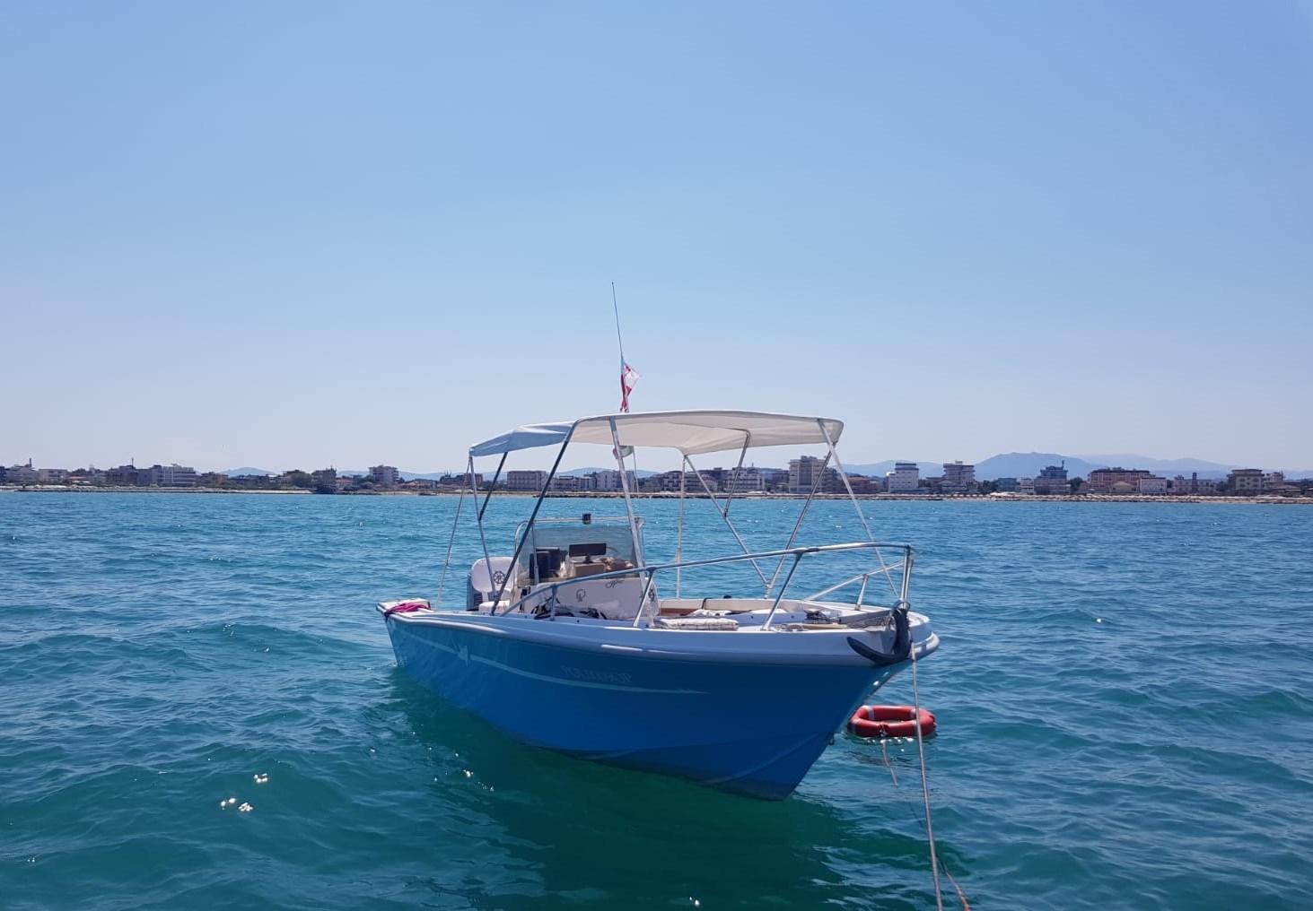 2 Batteries, remorque (2 assi), Couleur spéciale (wrapping azzurro), Douche de cockpit, Flaps électriques, Indicateurs de flaps, Éclairage de courtoisie, 2 Pompe de cale électrique, Guindeau électrique, Echelle de bain.