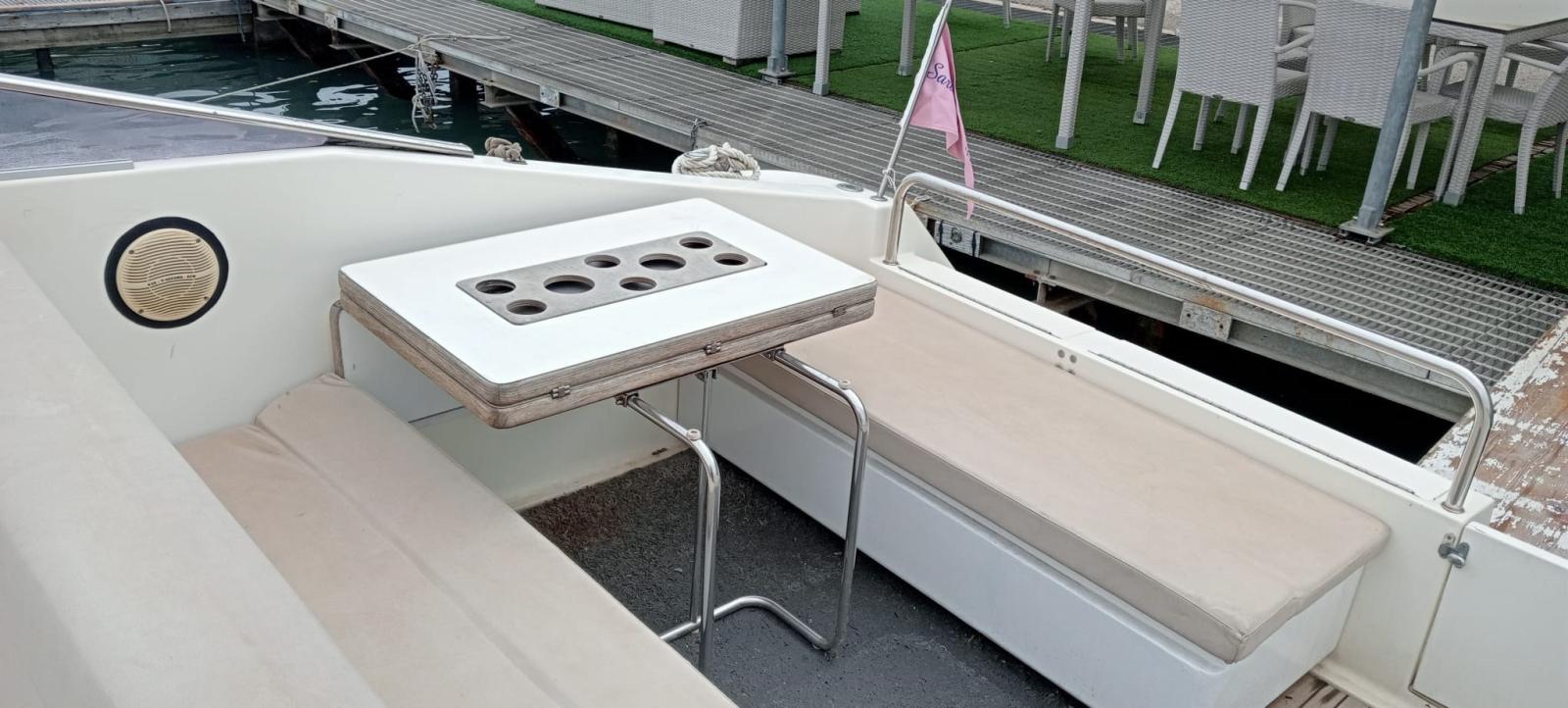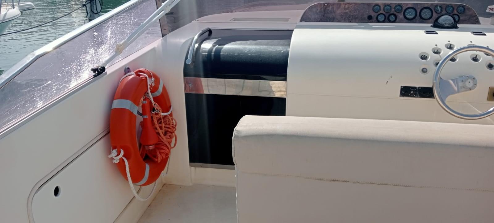 Alarme moteur, Eau sous pression, Batteries (nuove 2023), Douche de cockpit, Flaps hydrauliques, Plateforme arrière, Pompe de cale automatique, Prise de quai, Connexion eau sous pression à quai, Onduleur, Rollbar, Guindeau électrique, Echelle de bain, Corne.