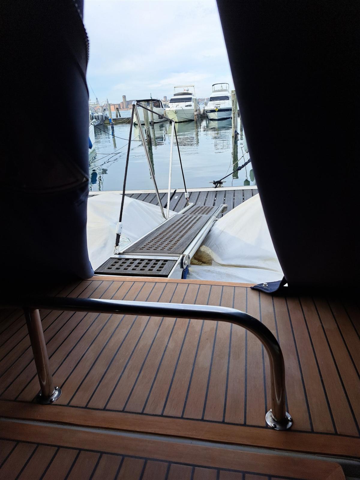 Alarme de pompe de cale, Eau sous pression, 4 Batteries (2023), Douche de cockpit, Hélice de rechange, Flaps hydrauliques, Passerelle, Plateforme arrière, Prise de quai, Onduleur, Guindeau électrique, Echelle de bain.