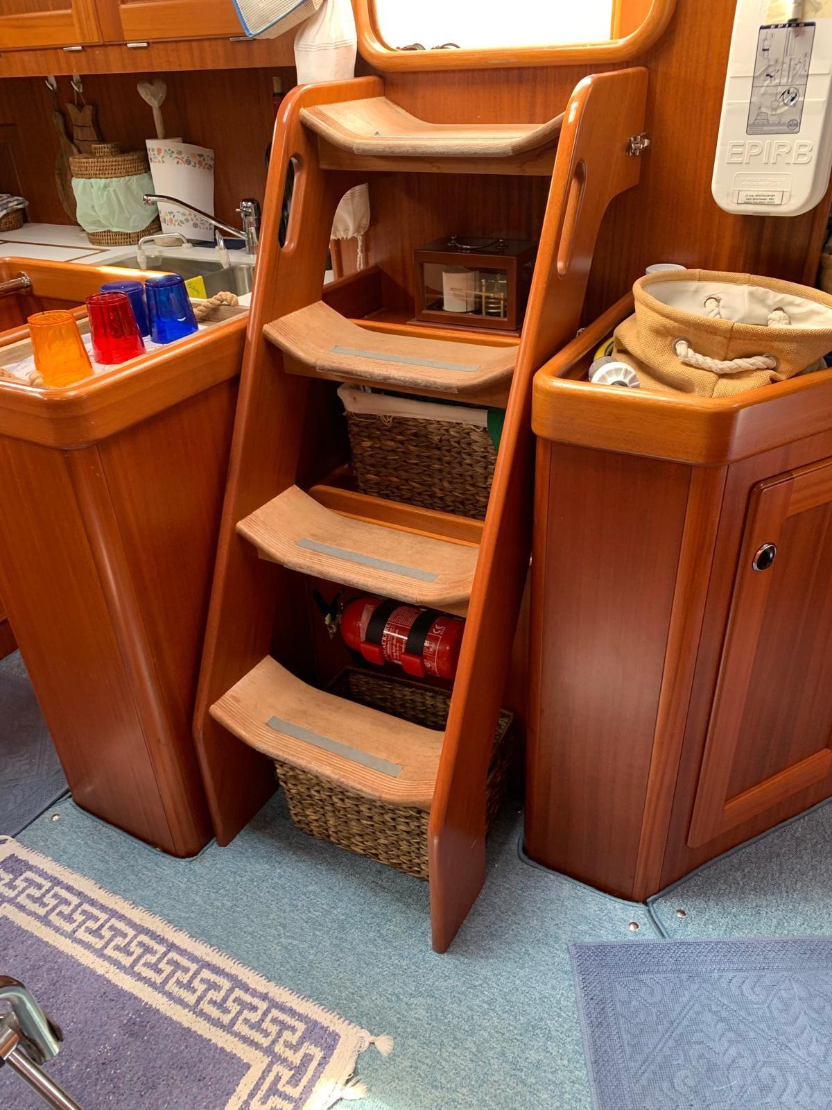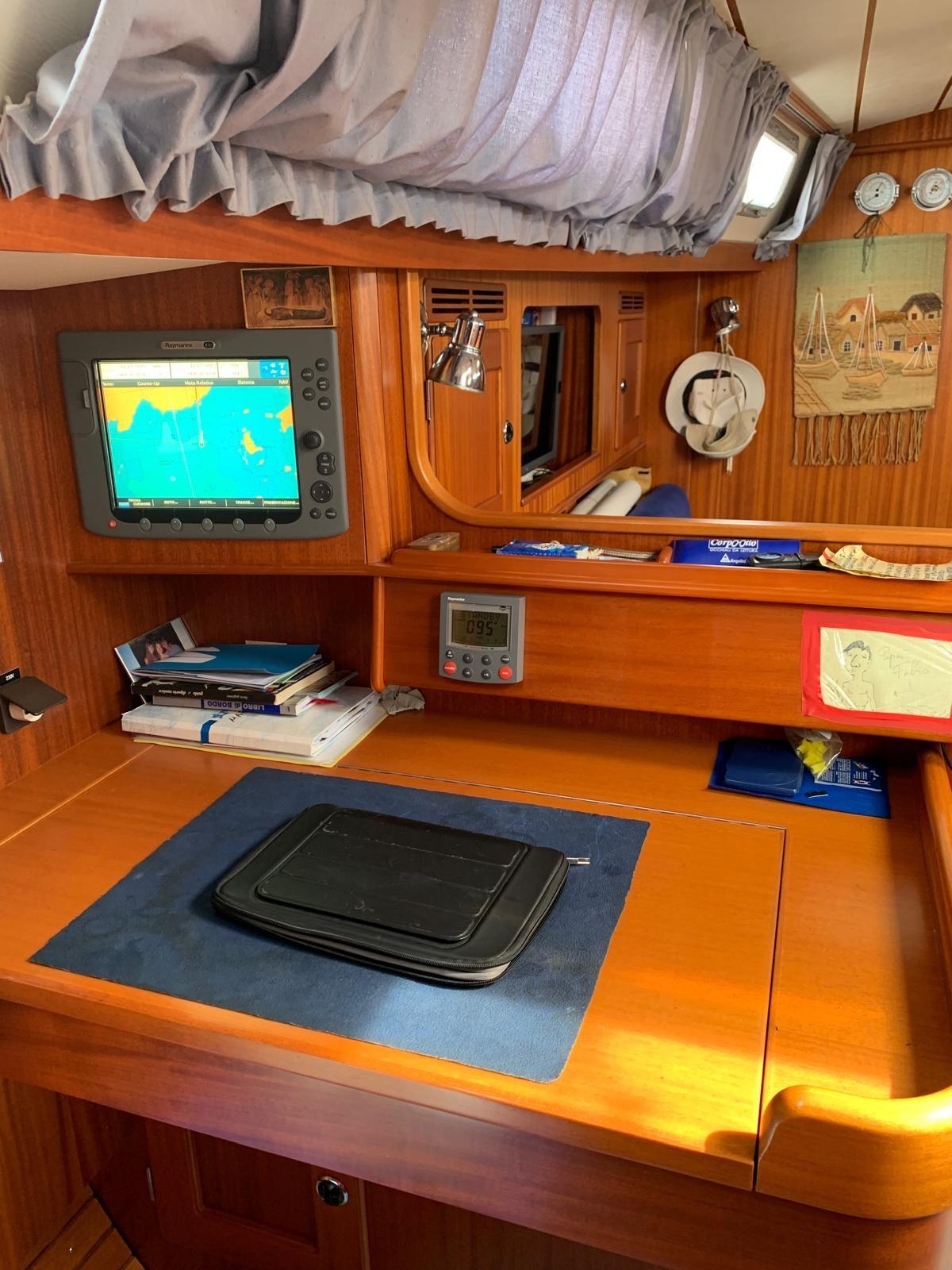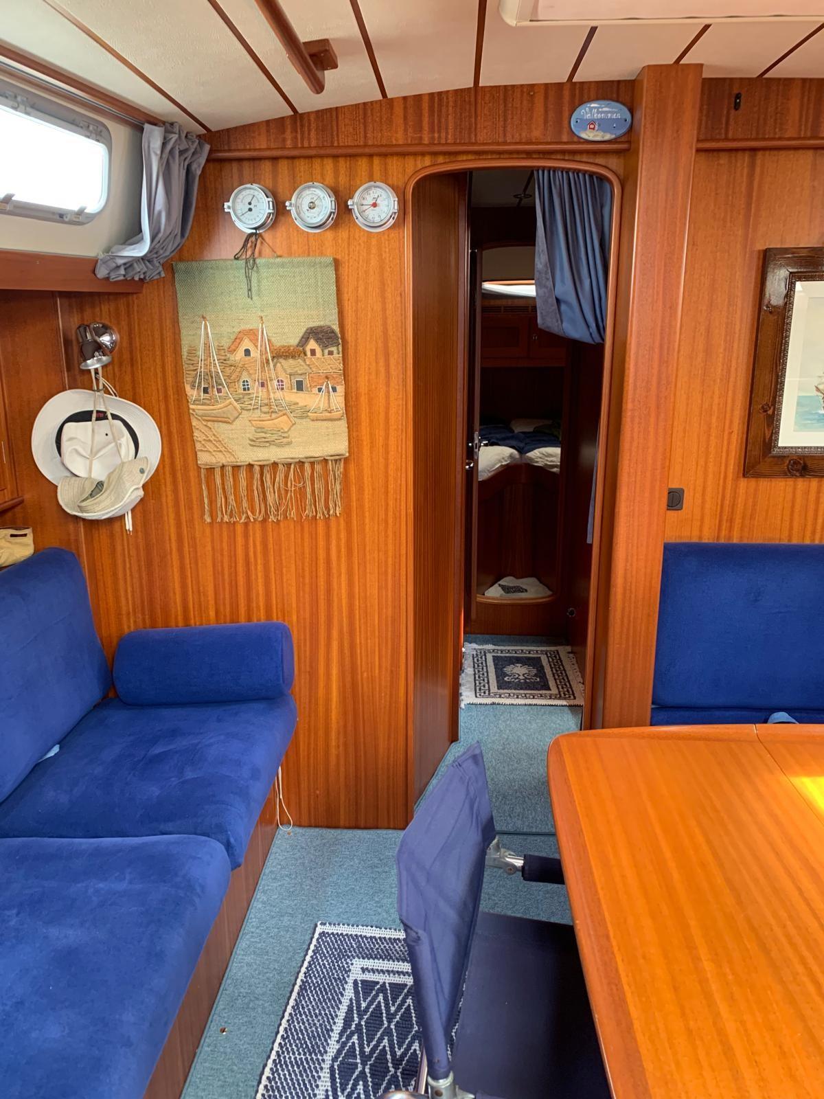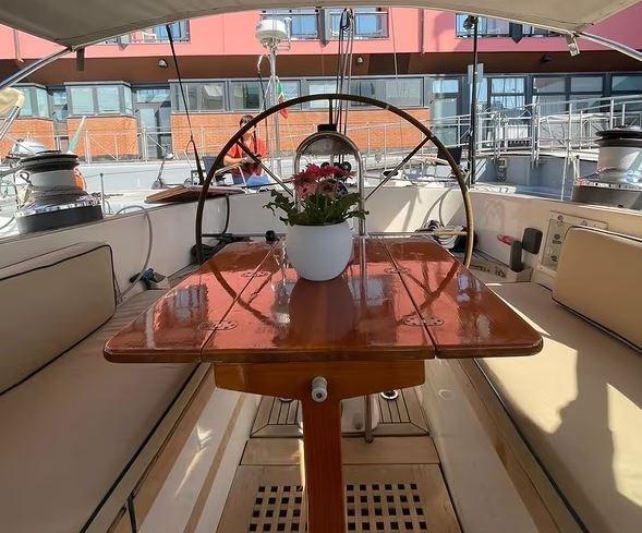 Eau sous pression, 3 Batteries, Douche de cockpit, Prise de quai, Connexion eau sous pression à quai, Onduleur, Guindeau électrique, Echelle de bain, Annexe (2,5 m 4HP Mercury).