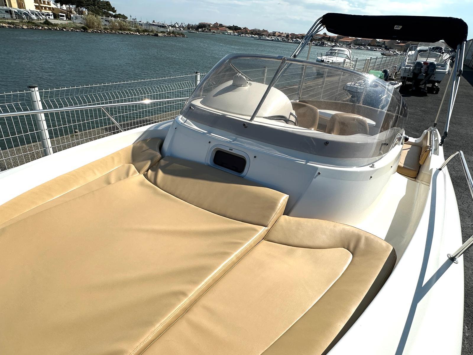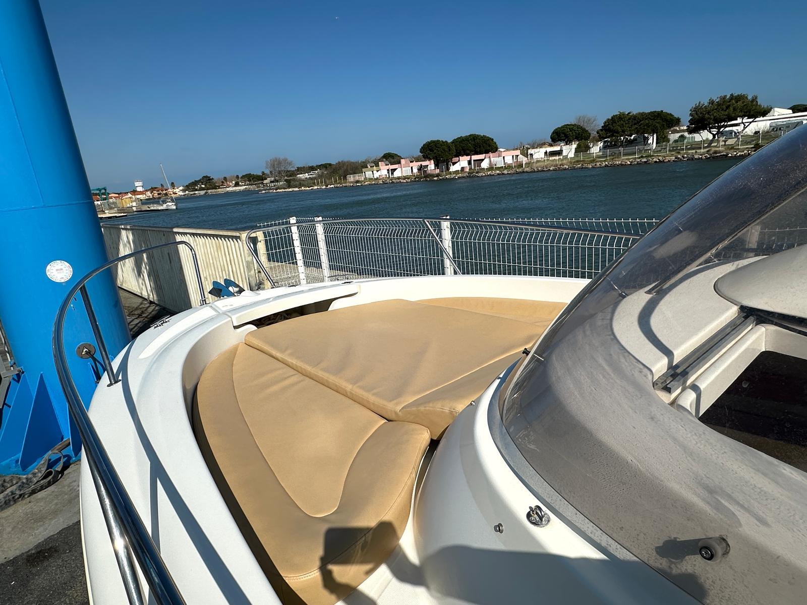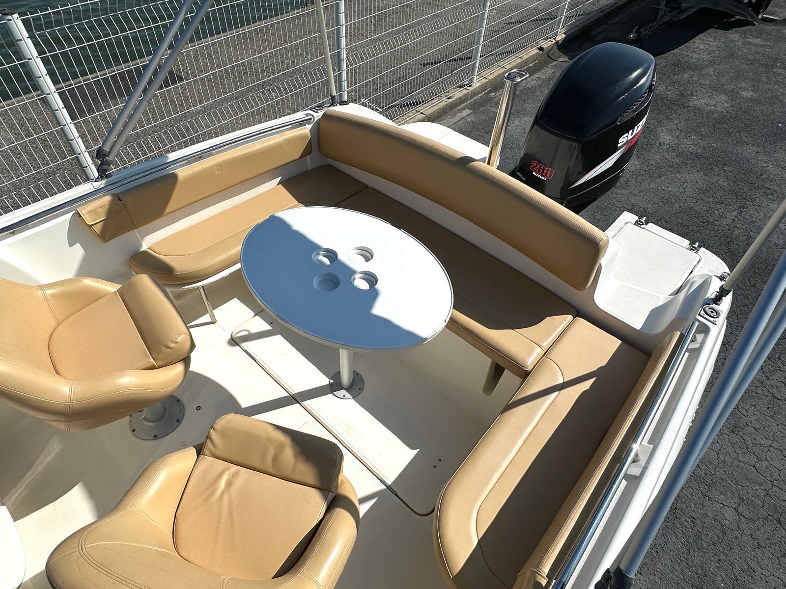 Bien motorisé avec son 200 cv Suzuki, et grâce à son mât de ski, il saura répondre à un programme de sports nautiques.
