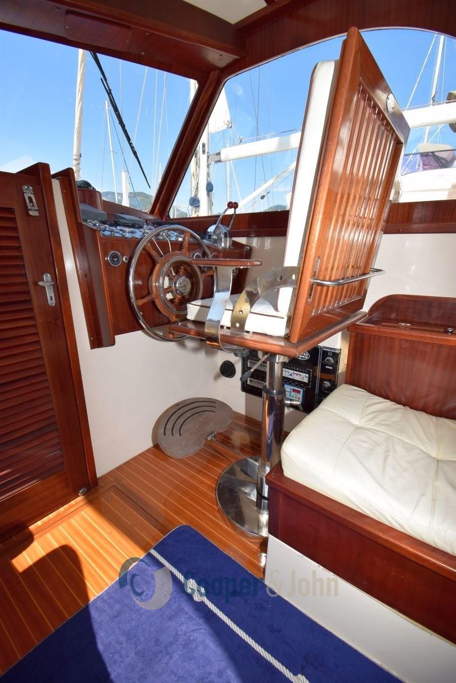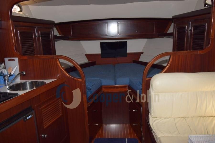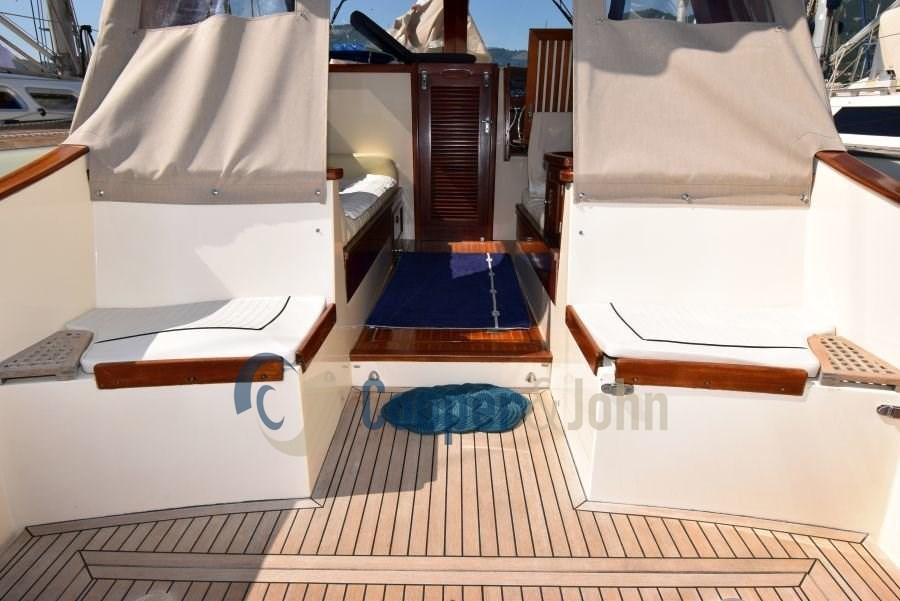 Eau sous pression, 4 Batteries, Hard top, Cockpit en teck, Prise de quai, Guindeau électrique, Echelle de bain, table de cockpit.