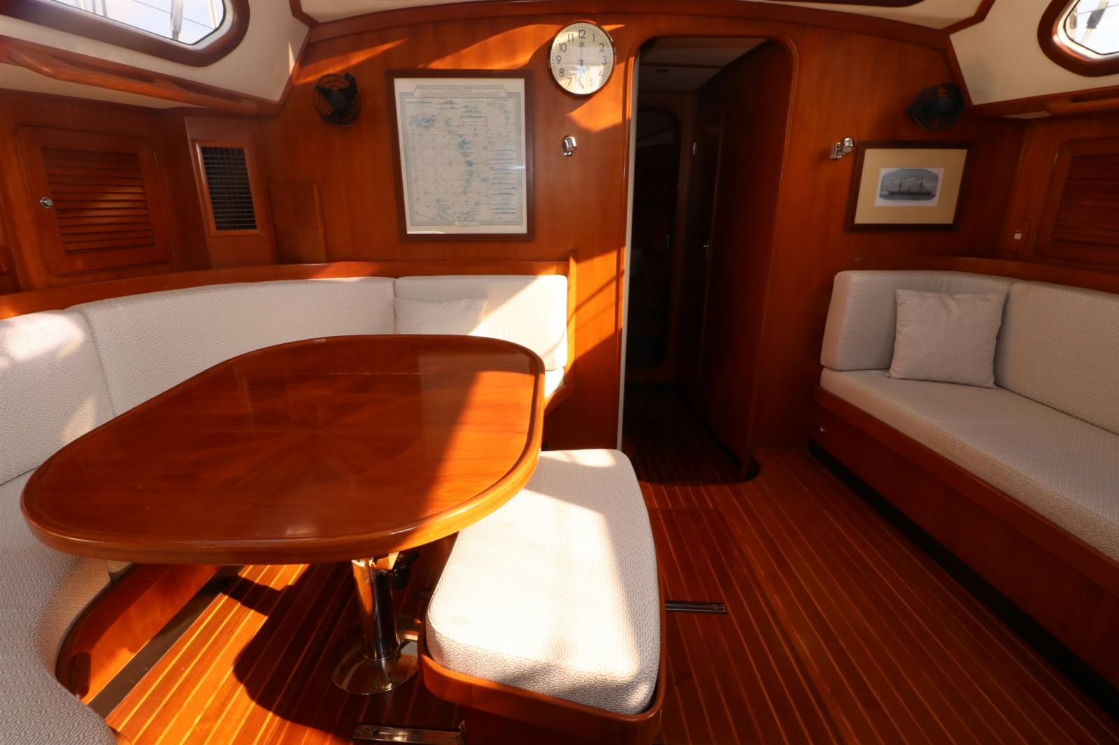 Eau sous pression, Passavant en teck, Couleur spéciale, Douche de cockpit, Propulseur d'étrave (VETUS), Pompe de cale automatique, Pompe de cale manuelle, Cockpit en teck, Prise de quai, Guindeau électrique, Gréement monotoron, Echelle de bain, table de cockpit, Table pliante de salon, 2 Winch, 3 Winch électrique, Windex.