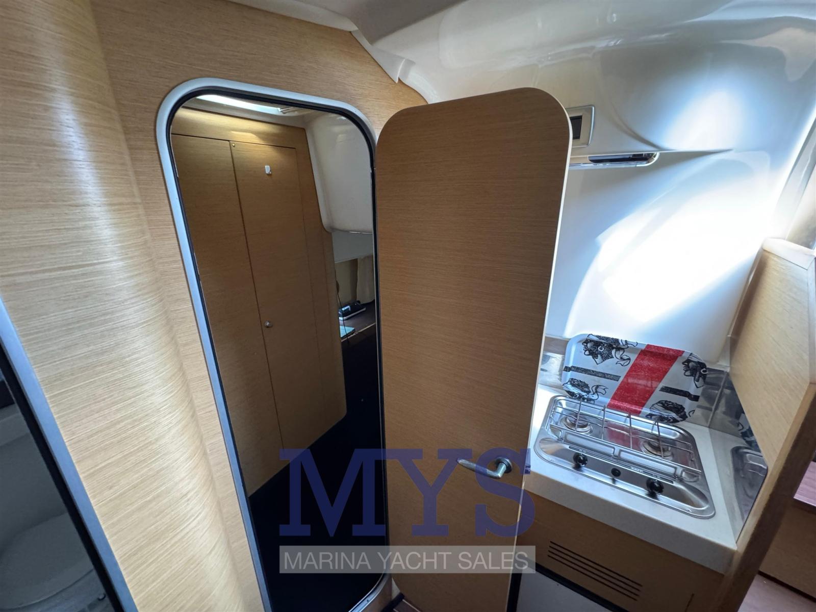 Alarme moteur, Eau sous pression, Douche de cockpit, Plateforme arrière, Pompe de cale automatique, Porte latérale, Prise de quai, Guindeau électrique, Echelle de bain, table de cockpit, Corne.