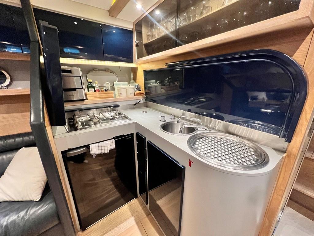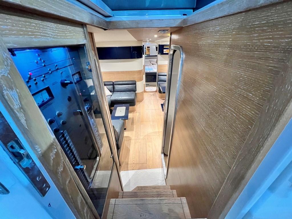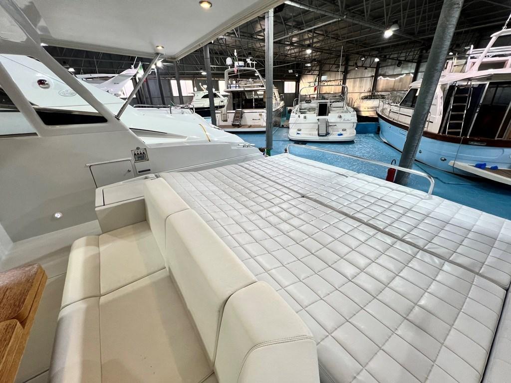 Alarme de pompe de cale, Eau sous pression, Batteries (2023), Douche de cockpit, 2 Hélice de rechange, Phare de poursuite (non collegato), Flaps hydrauliques, Extincteur(s) fixe(s), Passerelle (telescopica), Plateforme arrière, Pompe de cale automatique, Prise de quai, Onduleur, Guindeau électrique, Echelle de bain, table de cockpit, Annexe (con FB), Corne.