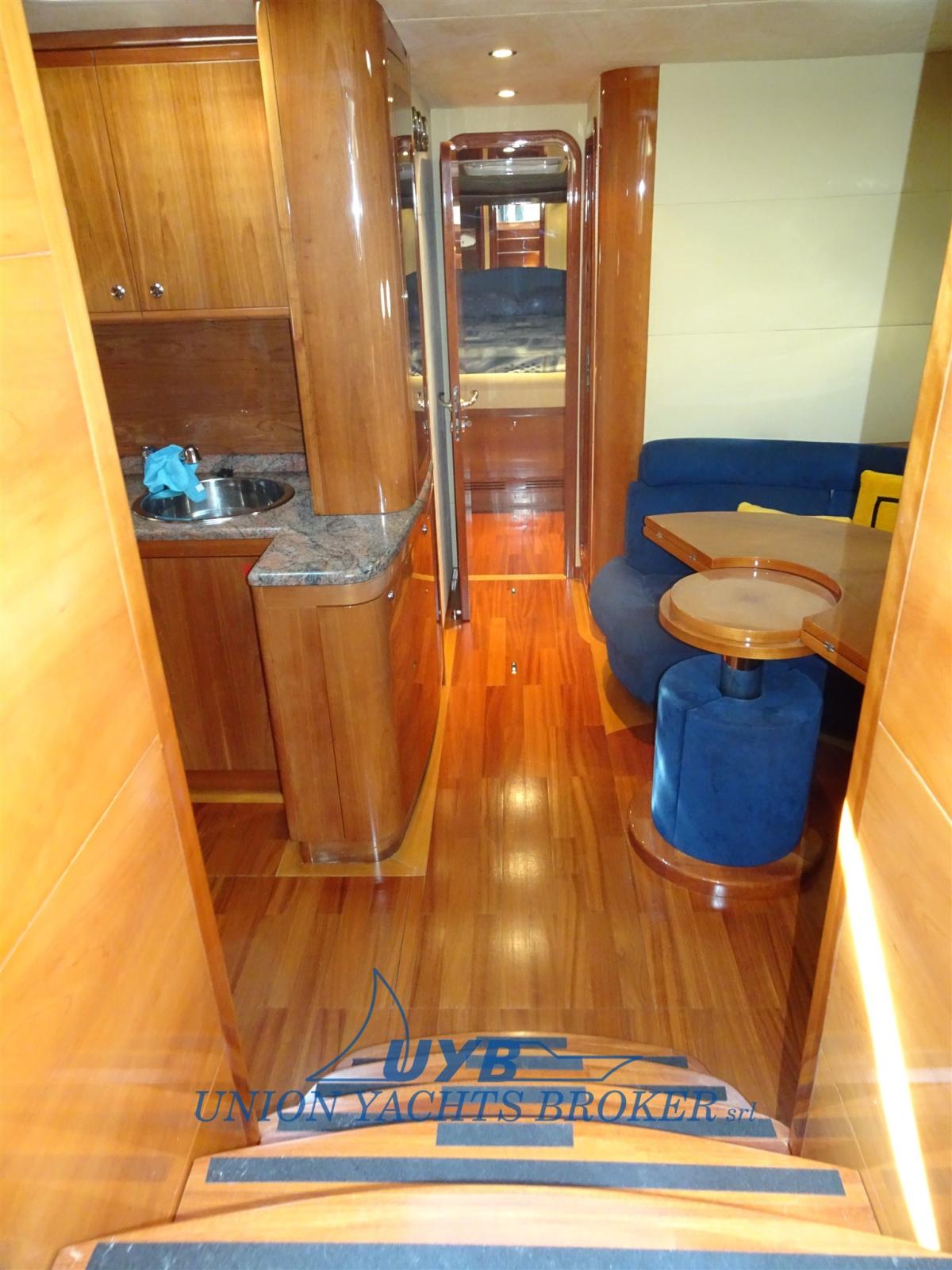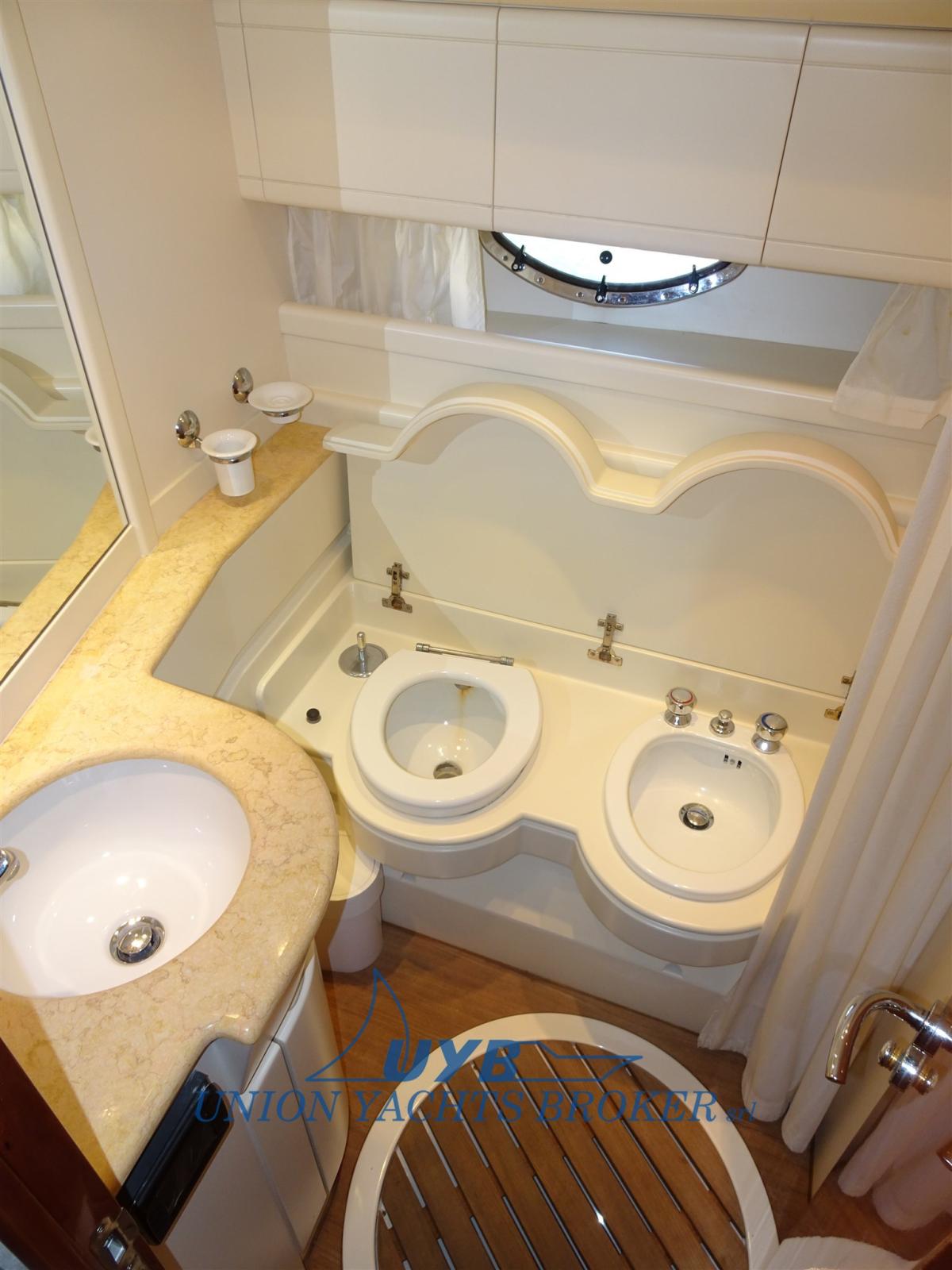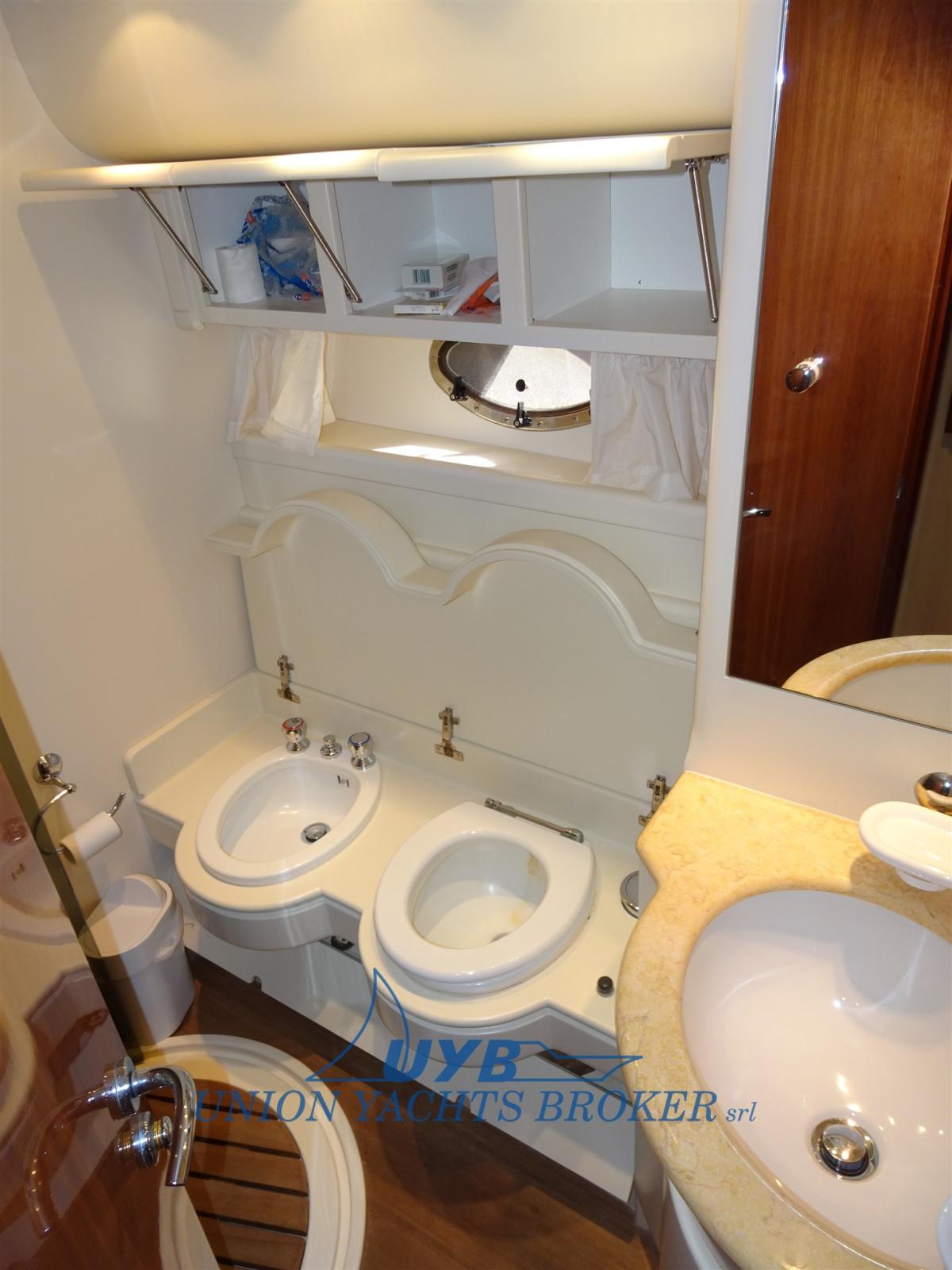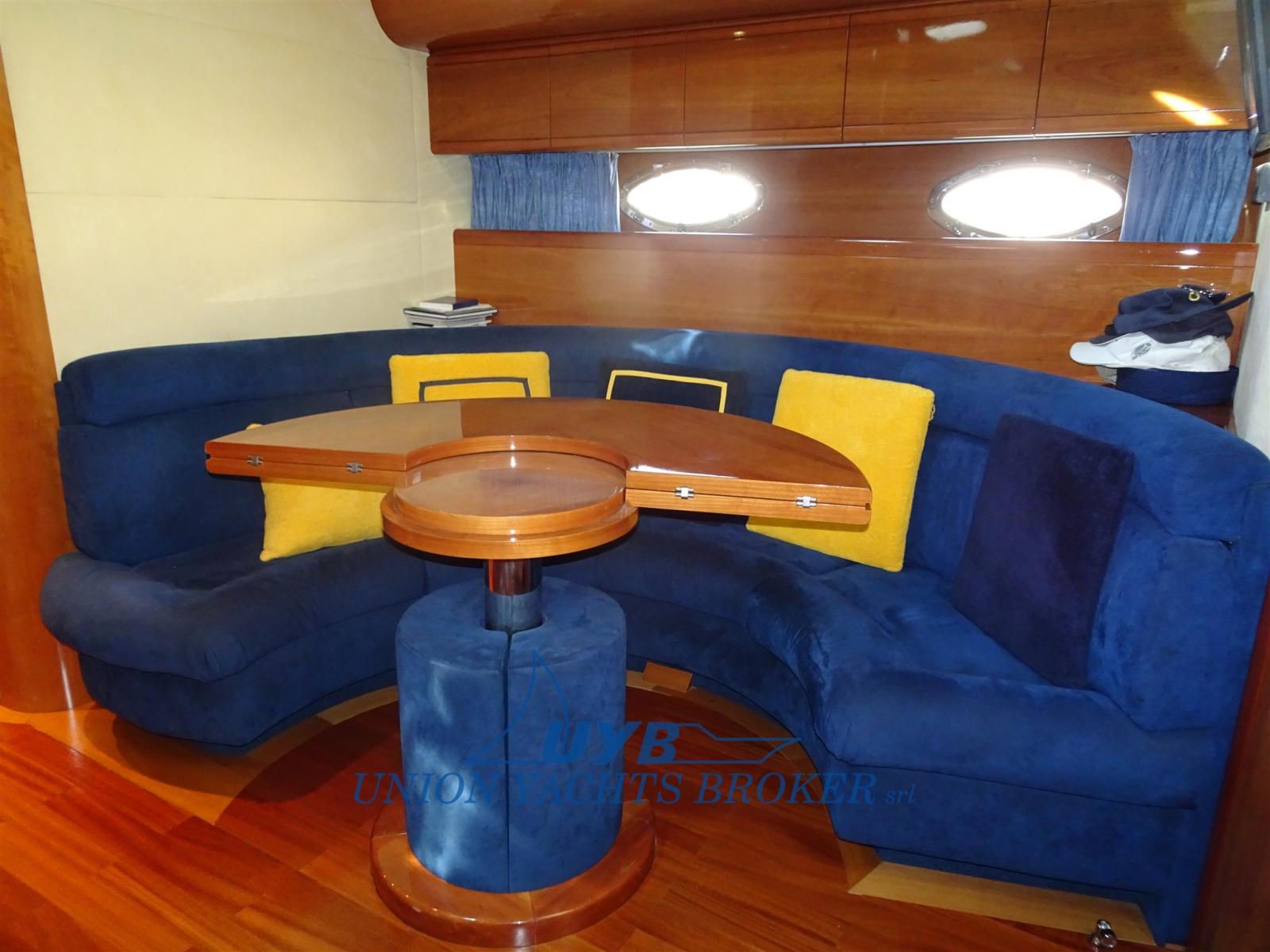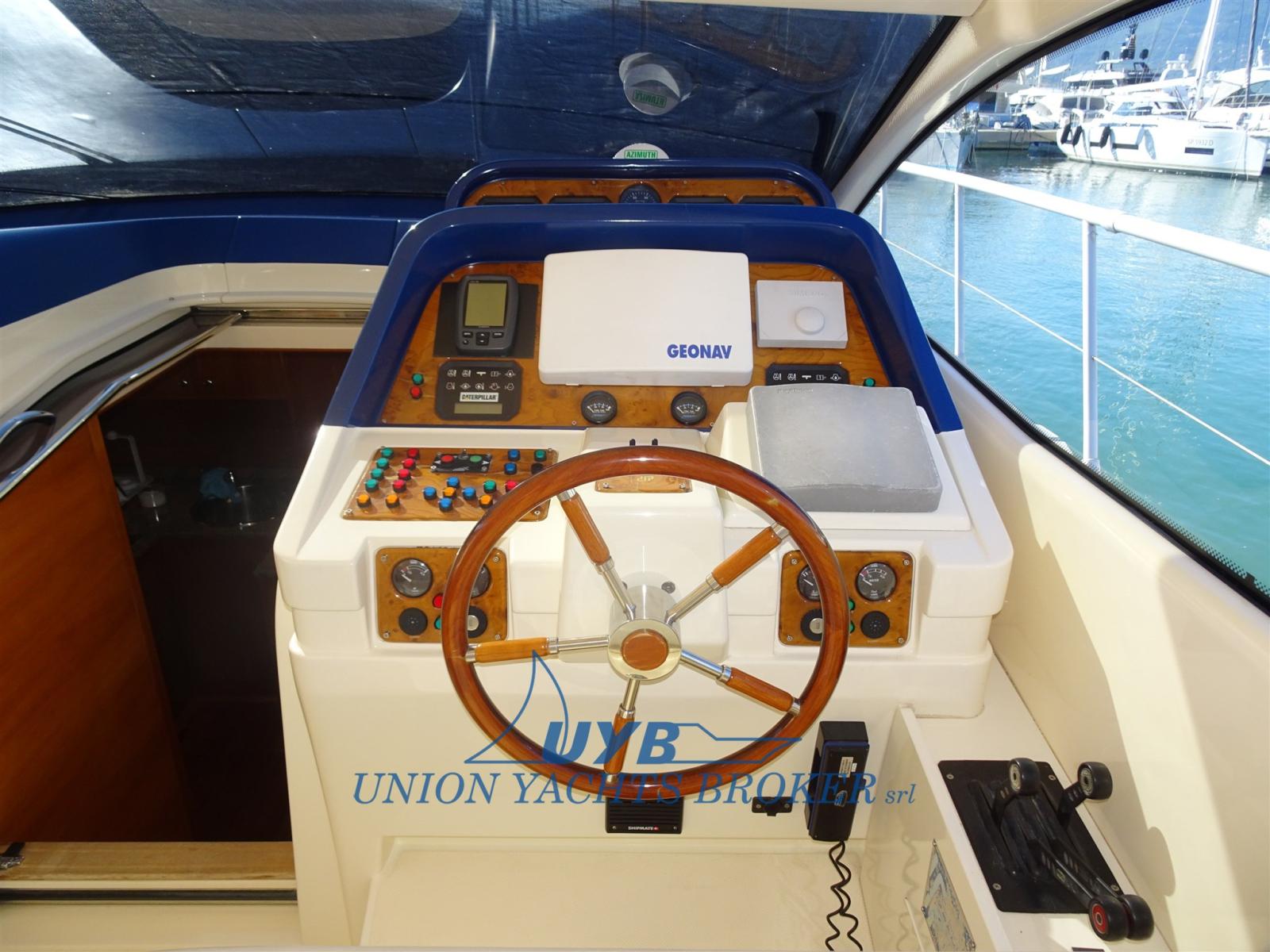 Alarme moteur, Eau sous pression, Douche de cockpit, Flaps hydrauliques, Garage à annexe, Passerelle (idraulica), Plateforme arrière, Pompe de cale automatique, Pompe de cale manuelle, Porte latérale, Cockpit en teck, Prise de quai, Connexion eau sous pression à quai, Onduleur, Guindeau électrique, Echelle de bain, table de cockpit, Winch électrique arrière (a sinistra).