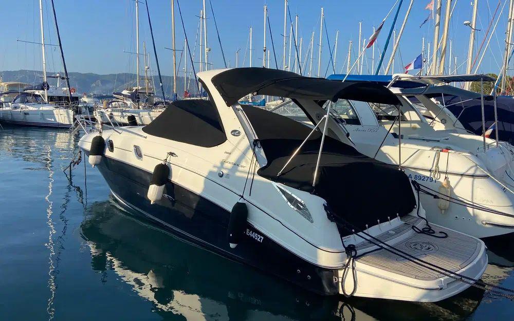 Magnifique Sea Ray Sundancer 305 de 2011, équipé de 2 moteurs Mercruiser 5.0L de 260 CV (690 heures). Ce bateau américain, réputé pour sa qualité et son design soigné, est en excellent état de présentation grâce à un entretien méticuleux et une utilisation raisonnée. Idéal pour les sorties en famille ou entre amis, ce bateau allie confort, performance et élégance. Il a prouvé sa fiabilité avec 3 traversées aller-retour continent/Corse (dernière en 2023) et 2 tours de Corse, avec une traversée Cavalaire-Calvi en environ 4 à 5 heures à une vitesse de croisière de 22 à 25 nœuds.