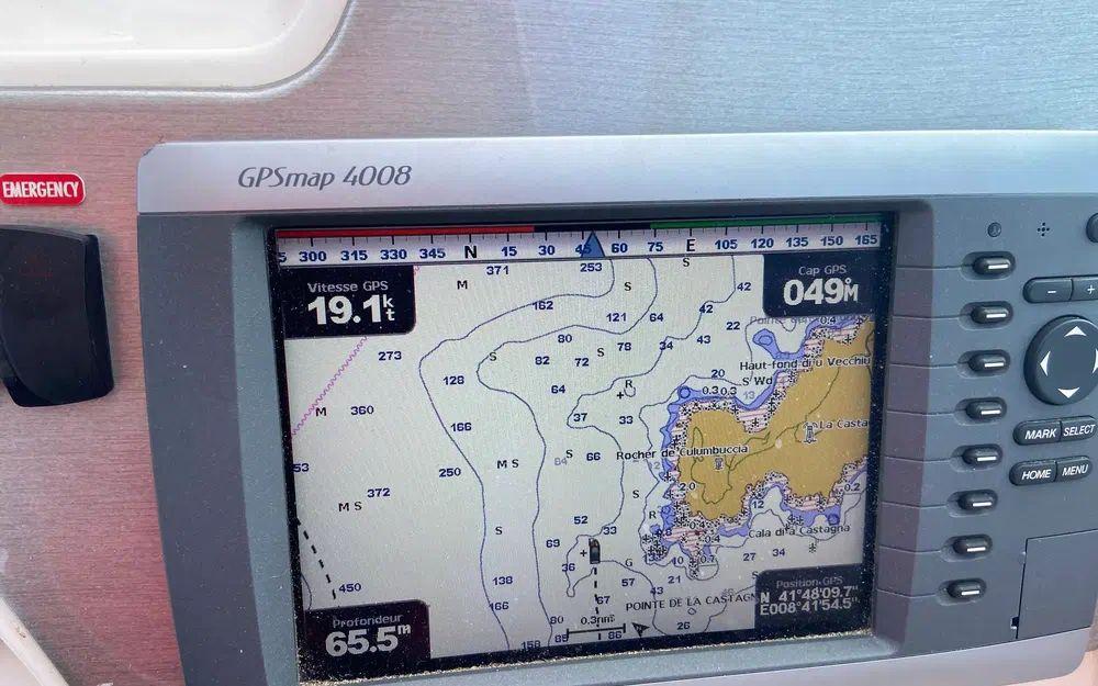 GPS, traceur, sondeur, VHF ASN, compas, compteur de vitesse, loch