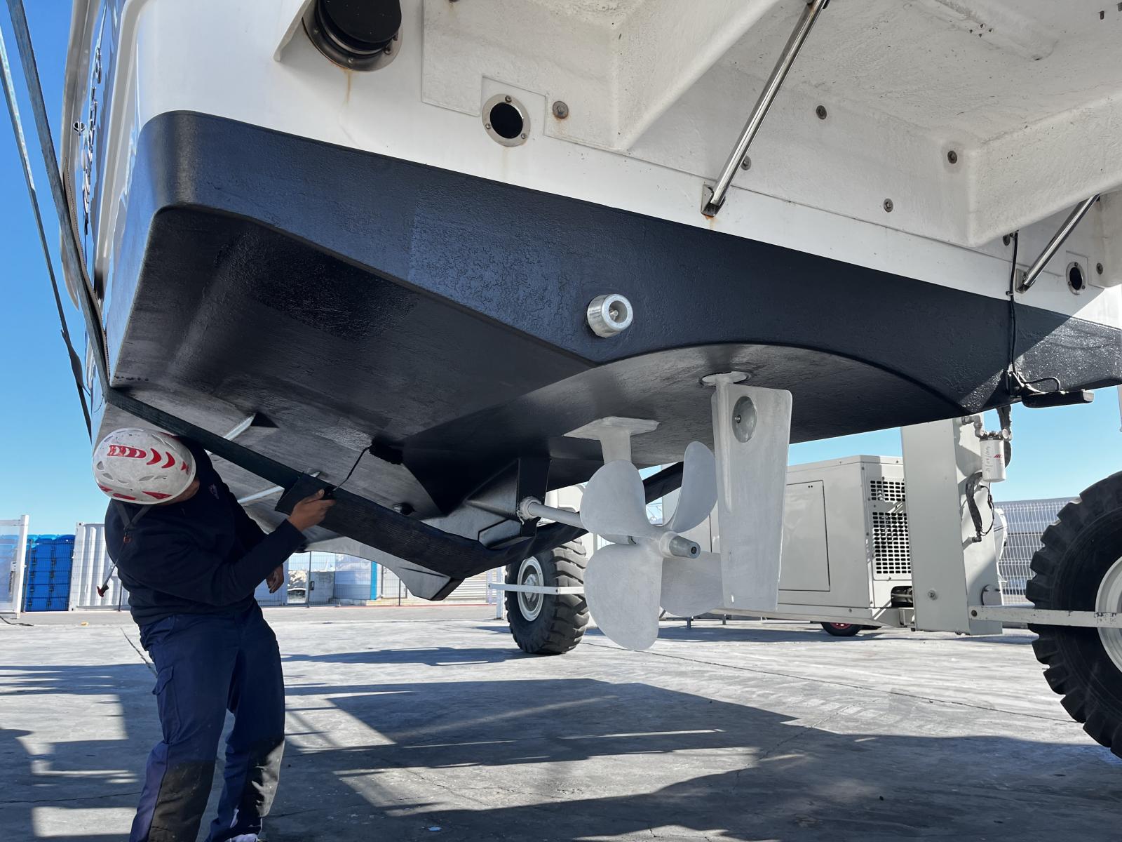 Au niveau propulseur d’étrave : batterie, indépendante en charge totale