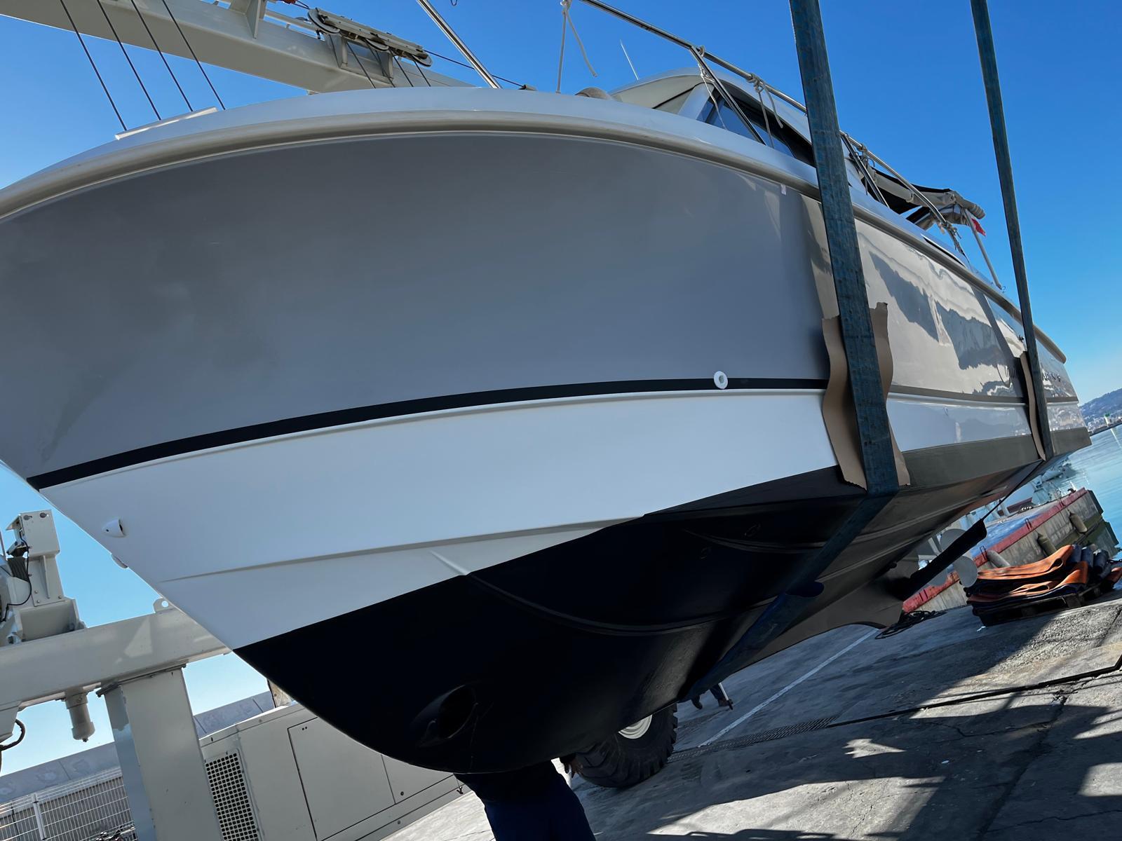 D’une longueur de 7.48 m, ce modèle 2015 est motorisé par Nanni (200 CV) .
