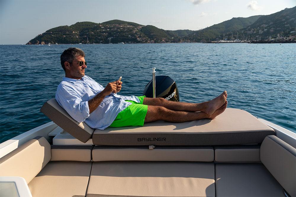 À l’instar des bateaux de la série VR, ce Bayliner VR6 Cuddy bénéficie des carènes de dernière génération. Le chantier a décidé d’allonger les coques des VR4, VR5 et VR6 à l’arrière, en ajoutant davantage de volume. Cet apport de matière donne plus de portance mais, surtout, il lui évite de déjauger de façon trop cabrée.