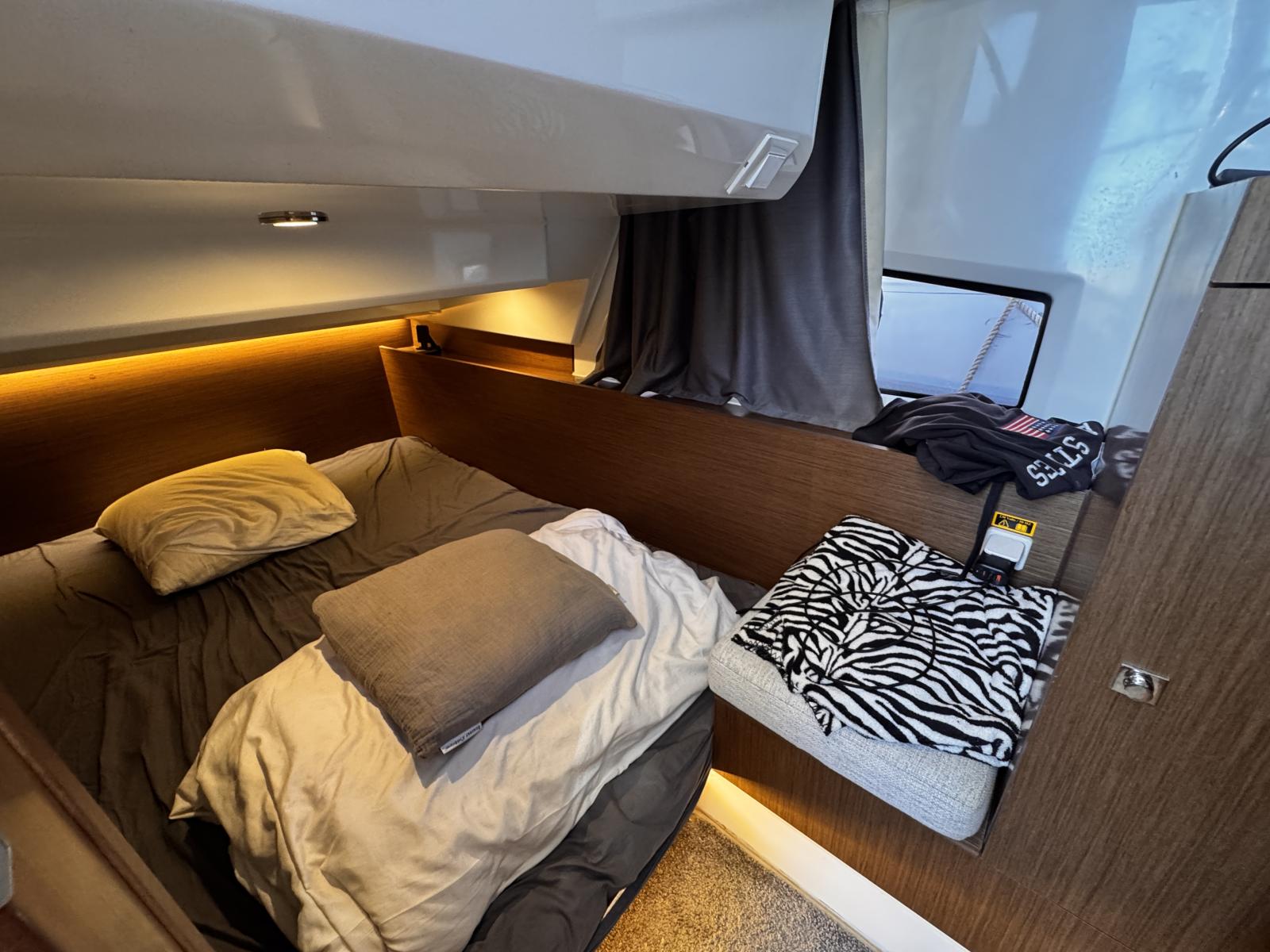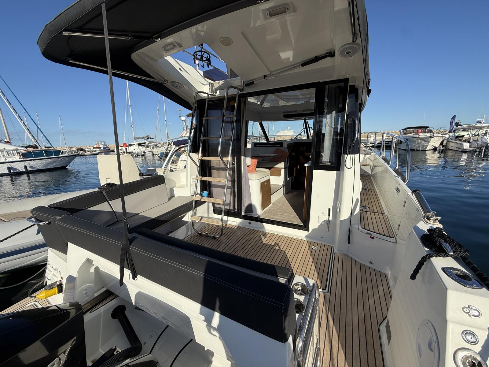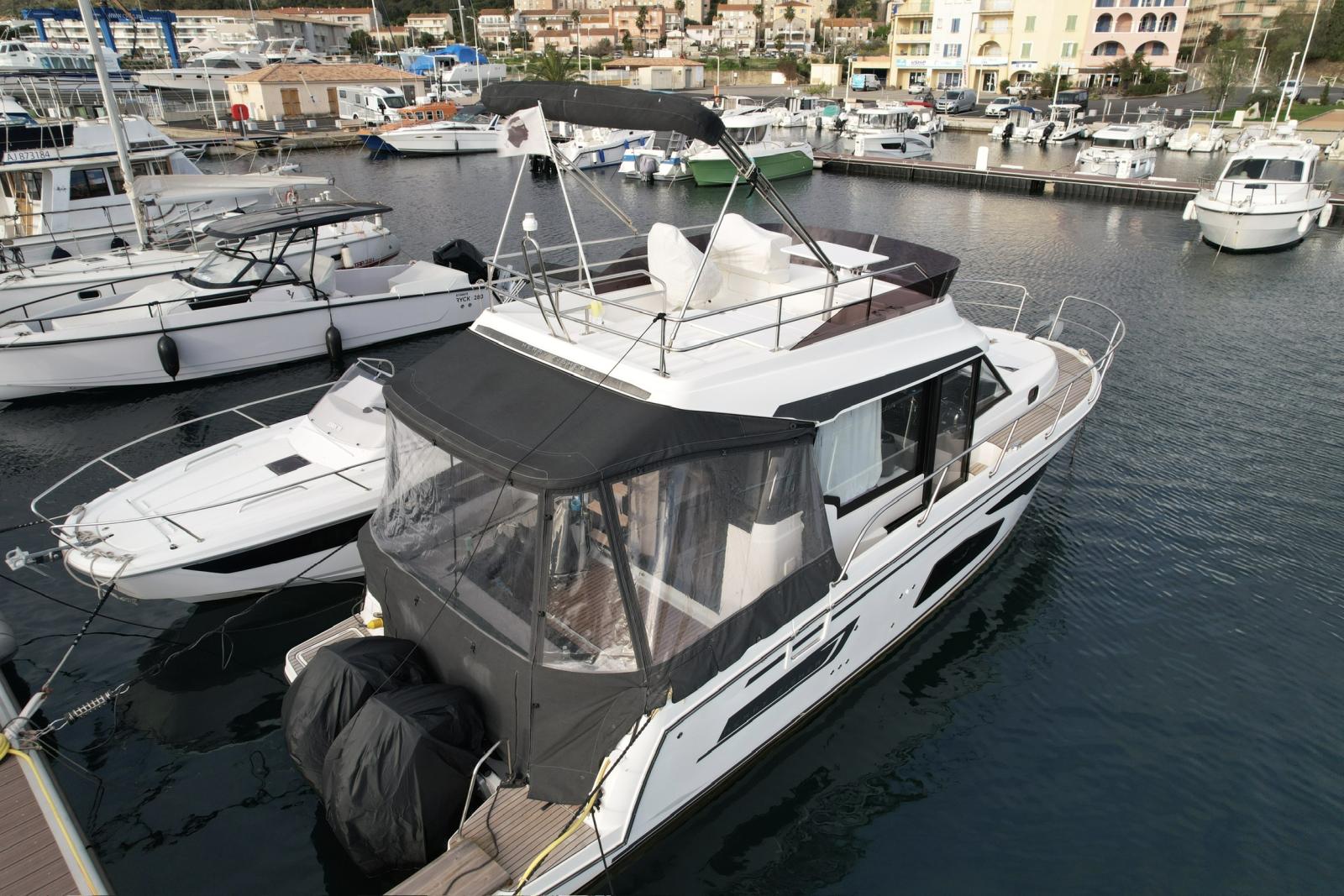 Découvrez l’un des rares modèles sur le marché à combiner une motorisation hors-bord puissante avec un Flybridge et offrant 3 belles cabines doubles. Avec sa configuration exceptionnelle, il est parfaitement conçu pour accueillir famille et amis lors de croisières confortables et élégantes.