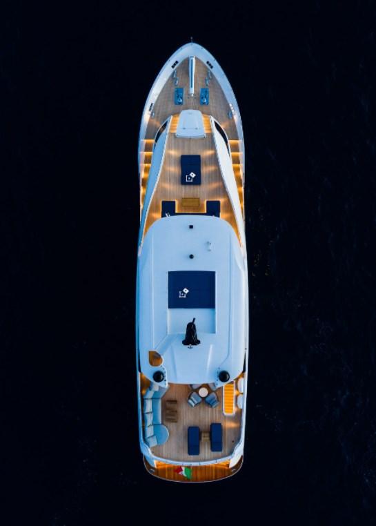 Garage à annexe (pour annexe 6.20m), Grue pour jet-ski, Stabilisateurs (CMC Electric Fin), Annexe (Williams 565 Tender jet).
