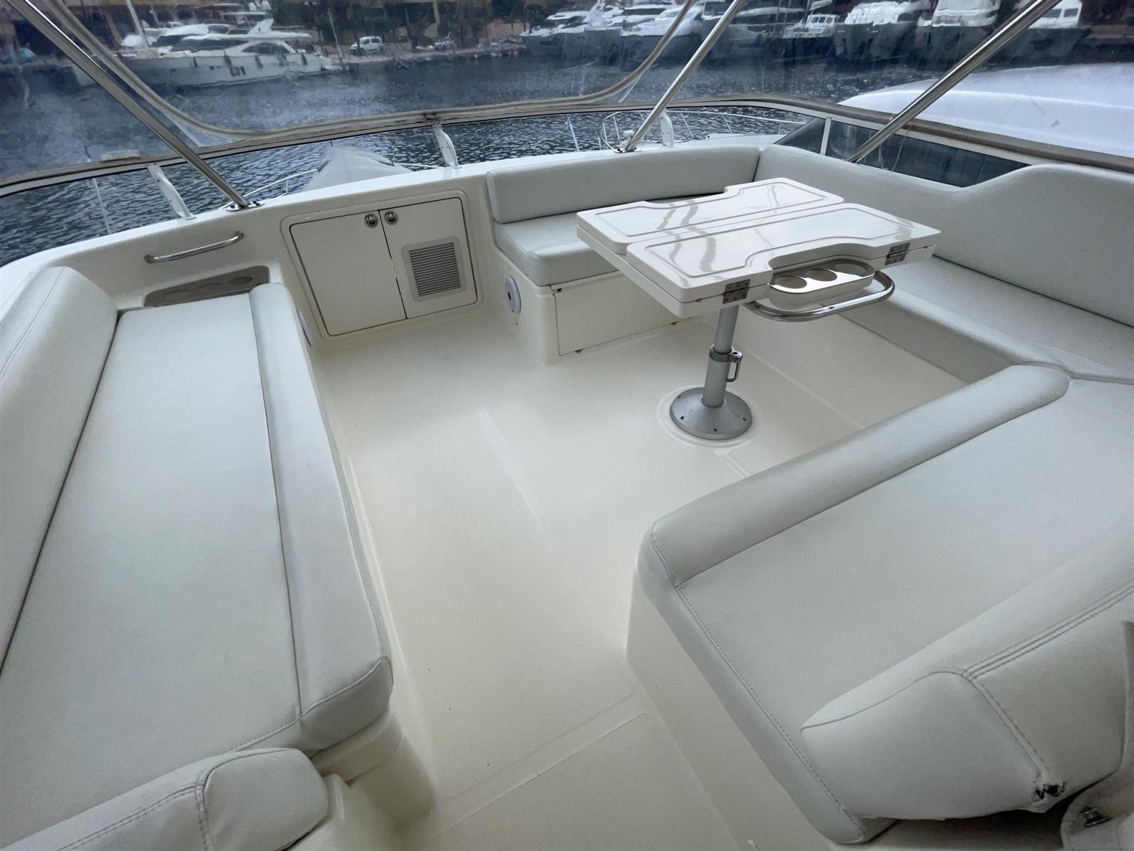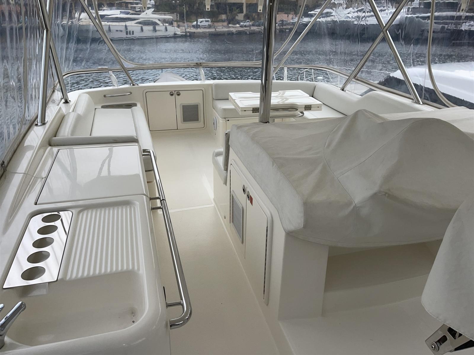 Ancre (50 m chaine), 9 Batteries (4 Service, 4 moteurs, 1 groupe), 3 Chargeur de batterie (dont 1 convertisseur), Douche de cockpit, Grue électrique (hydraulique 3 bras), Hard top, Extincteur(s) fixe(s) (FM 200), Lavabo dans le cockpit, Spots sous-marins (multicolors), 4 Panneau solaire, Passerelle, Plateforme arrière (Hydraulique), Cockpit en teck, Prise de quai, Connexion eau sous pression à quai, Guindeau électrique, table de cockpit.