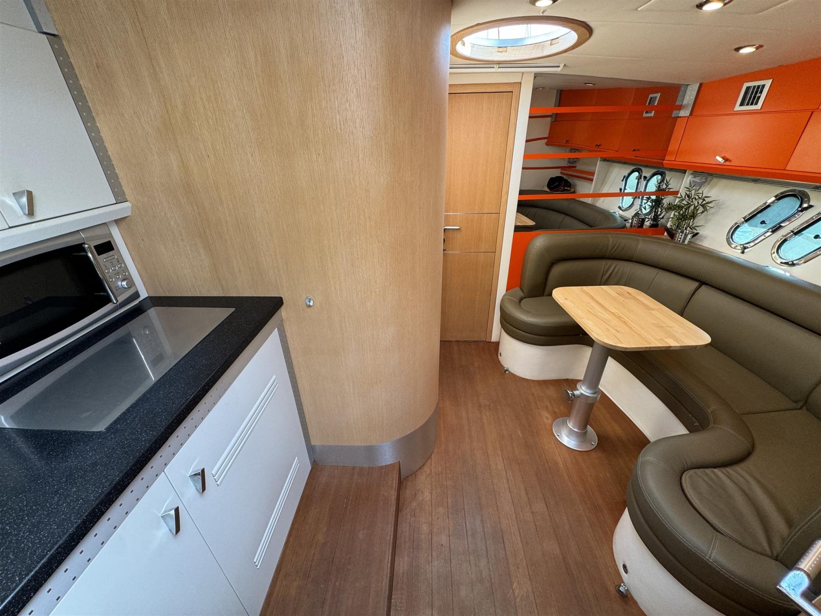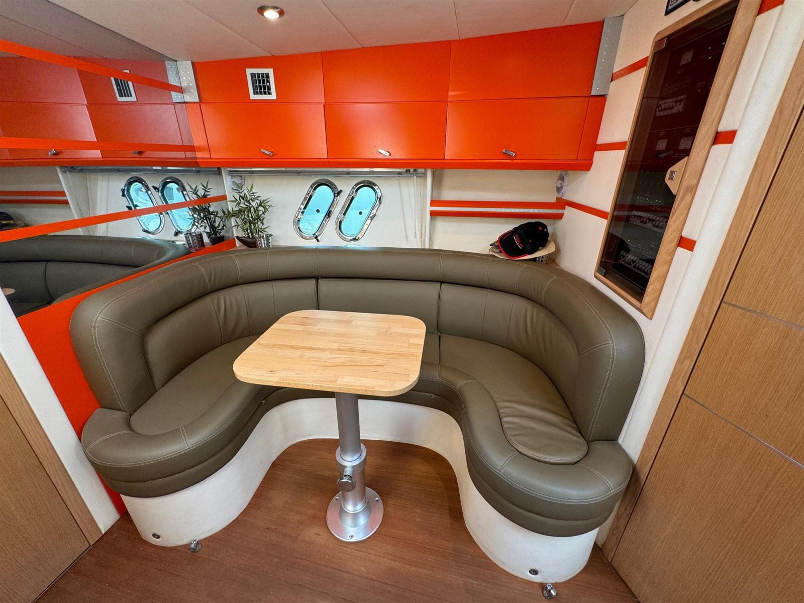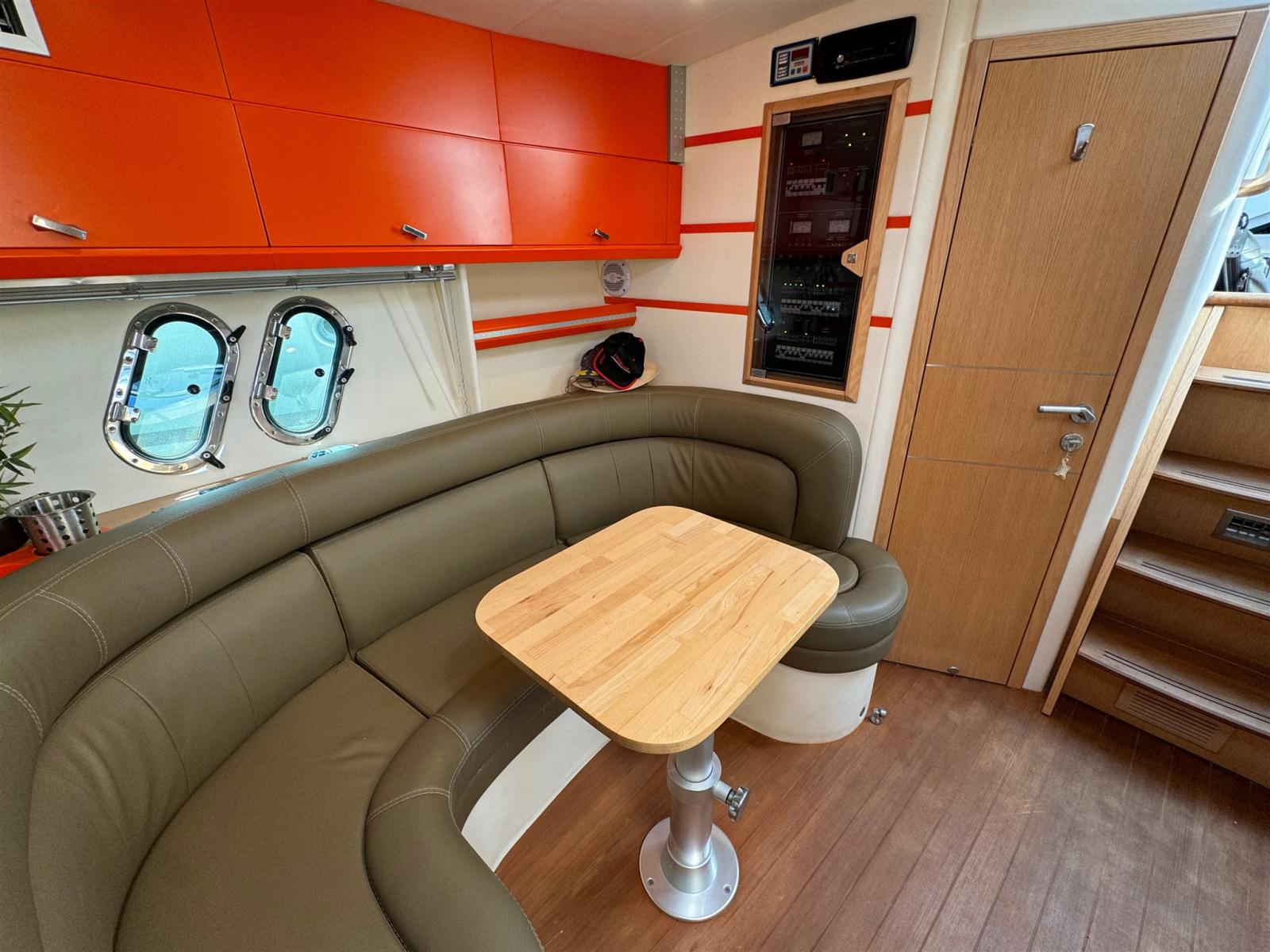 Eau sous pression, Douche de cockpit, Hard top, Extincteur(s) fixe(s), Lavabo dans le cockpit, Passerelle, Plateforme arrière (teck), Pompe de cale automatique, Cockpit en teck, Prise de quai, Onduleur, Guindeau électrique, Echelle de bain, table de cockpit.