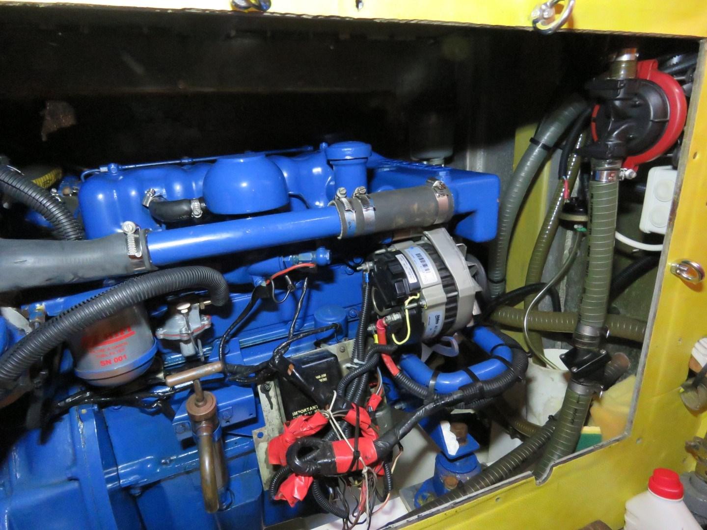 Ce Carval 43 du Chantier Dumont construit en Aluminium est équipé d'un moteur Perkins de 50 cv (refait en 2010, 1000 h).