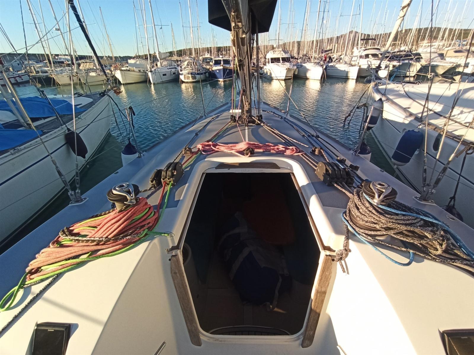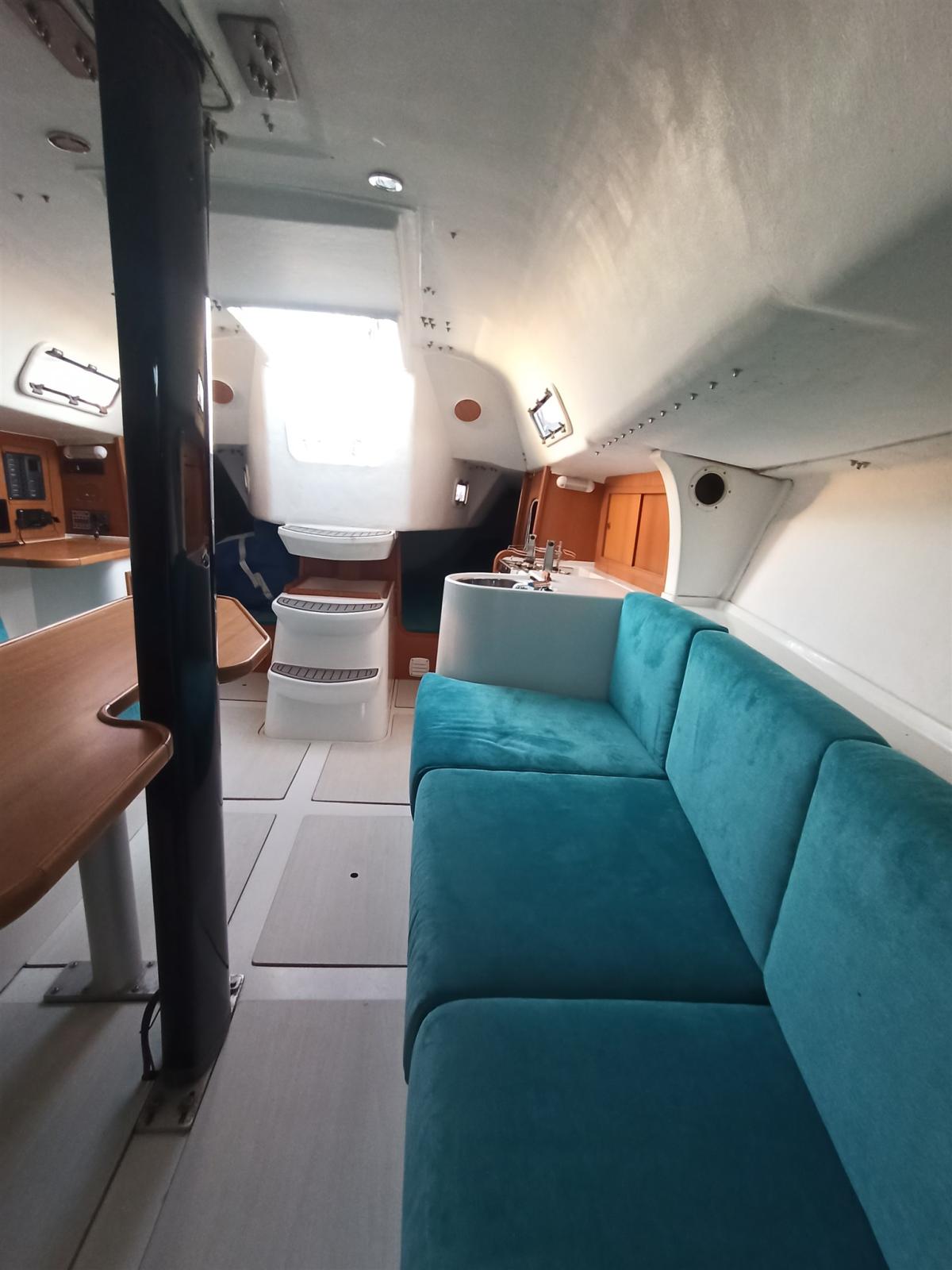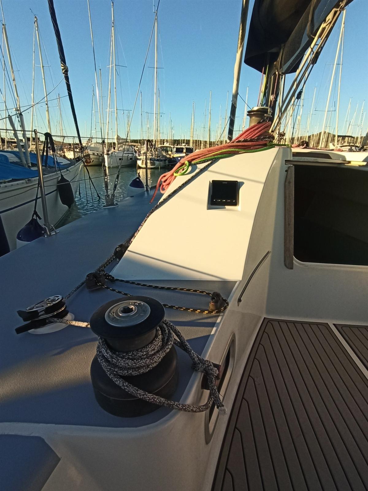 SOLARIS 36 OD Refit complet en 2023 : remise à neuf du système hydraulique et du système électrique, révision complète du moteur (débarquement et embarquement), polissage complet des aciers de pont et des pièces en inox, polissage complet de la coque, remplacement des hublots, nouvelle électronique, nouveau gréement et peinture du mât et de la bôme en carbone.