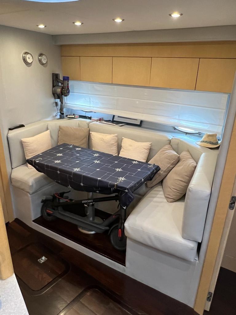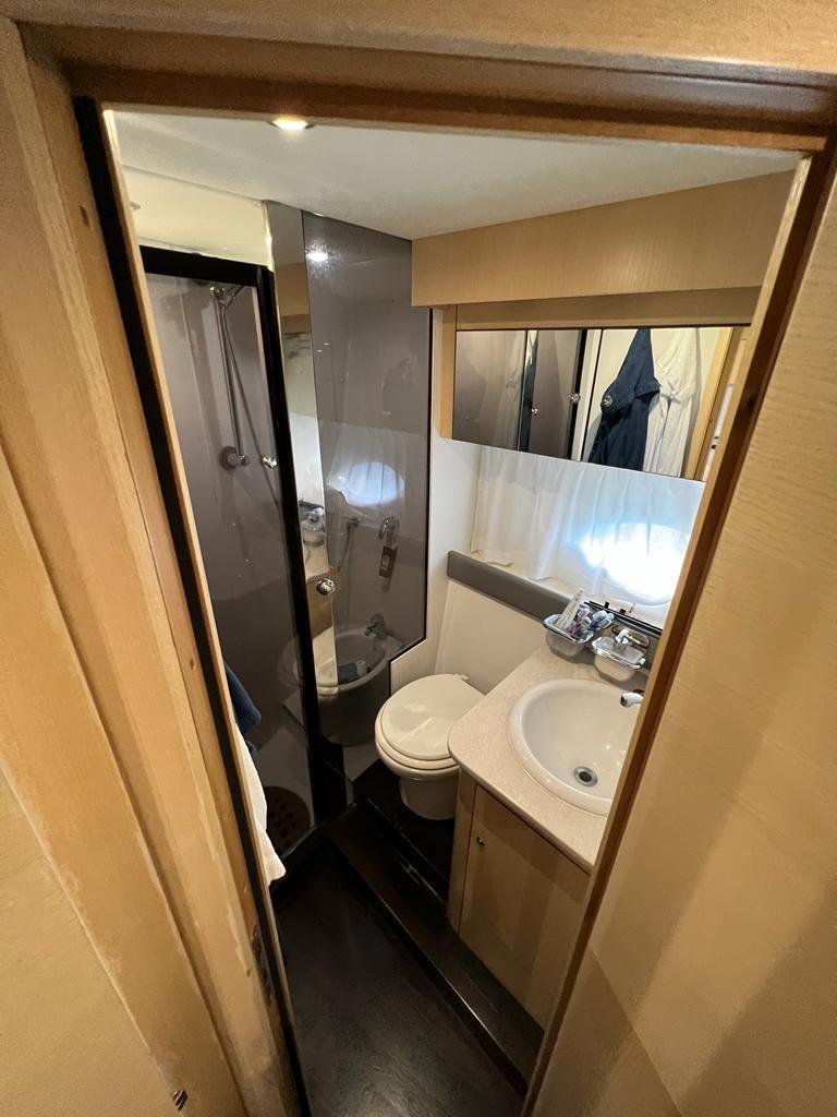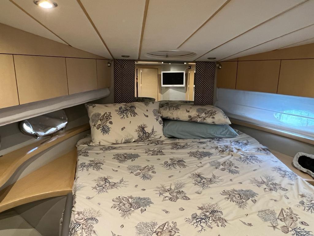 Excellent bateau bien entretenu et équipé, 3 cabines 2 salles de bain, remplacement 2021/2022 des injecteurs, révision des pompes, nettoyage des échangeurs, remplacement des turbines, soning et nettoyage des réservoirs de carburant, o9en plus de l’entretien périodique des moteurs et des stern drives. Gril dans le cockpit, Fusion stéréo avec haut-parleurs professionnels, haut-parleurs sur rollbarc, subwoofer dans le cockpit.