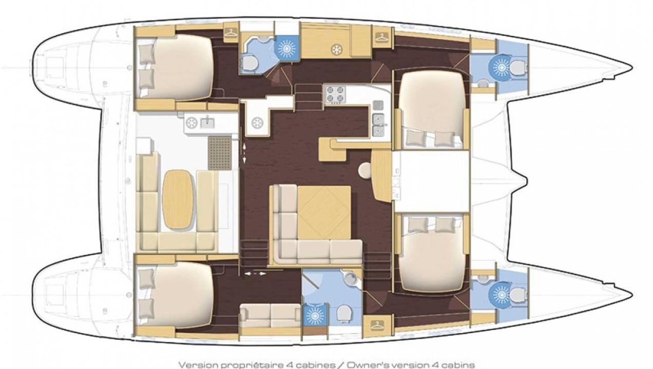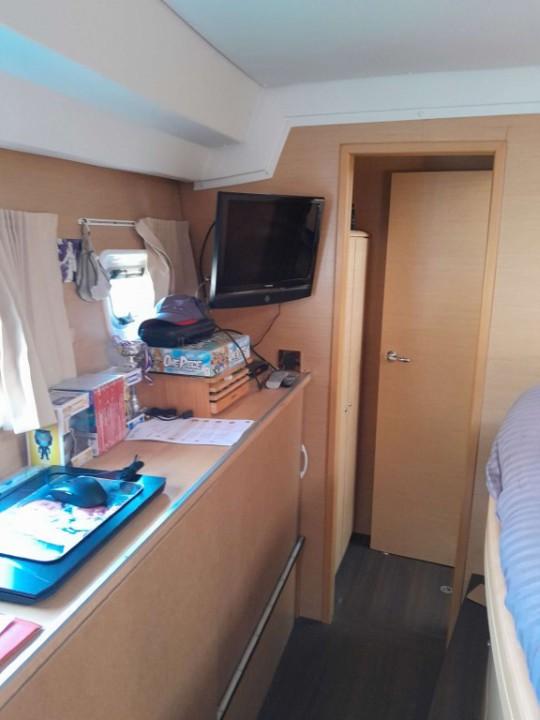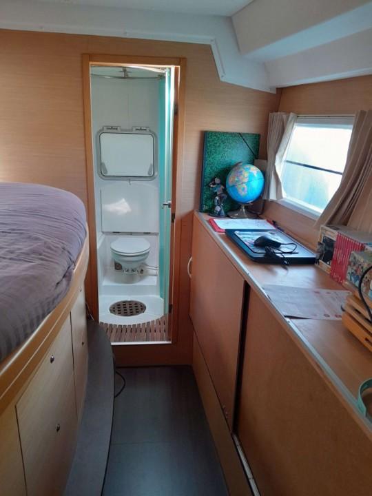 Avec ses grands espaces de vie, le Lagoon 500 offre un confort inégalé. Les cabines spacieuses et les salons lumineux permettent de profiter pleinement de la vie à bord. Une cabine a été aménagé en smart room technique.