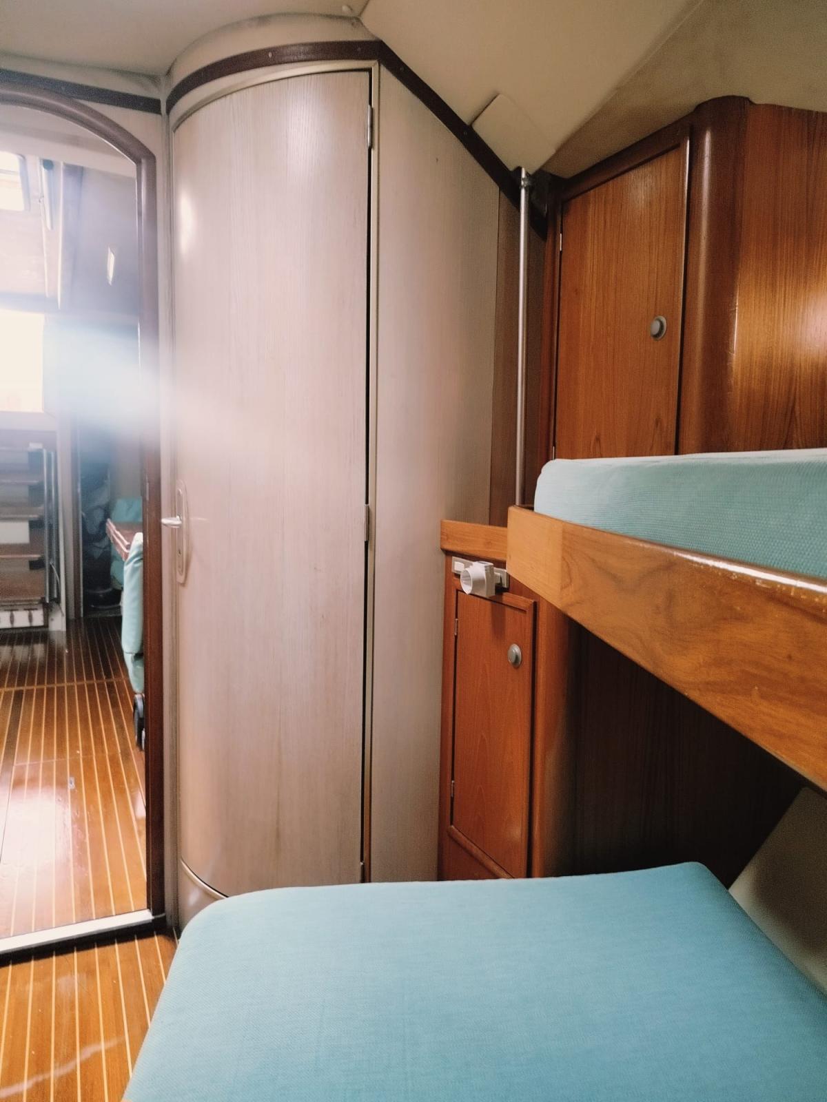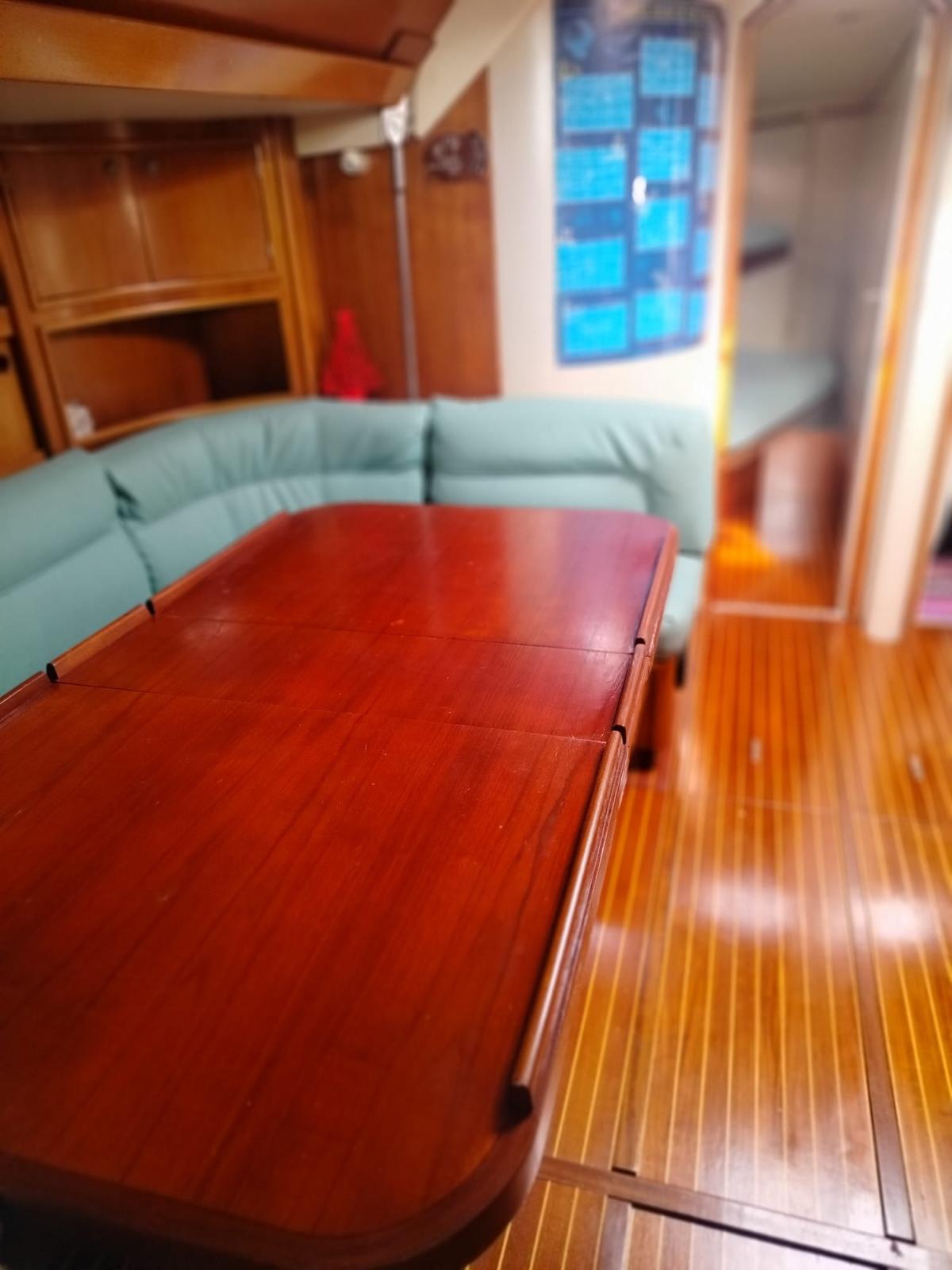 Alarme moteur, Alternateur, Ancre (DELTA 32 KG +65 m 10 mm chain), Eau sous pression (x 2), Batteries (x 4 180 Ah service 2023+1 x 180 Ah motor 2022+1x40 Ah generator 2019), Chargeur de batterie (QUICK 80Ah 2010), Douche de cockpit (h/c), Moteur d'annexe (JOHNSON 10 hp), Panneau solaire (200 W 2023 + regulator VICTRON Wifi), Passerelle, Pompe de cale manuelle, Prise de quai, Guindeau électrique (1200 W LOFRANS TIGRES), Gréement monotoron (2021), Echelle de bain, table de cockpit (GRP + teak), Annexe (BOMBARD 2.85 m 2010), Corne, Winch (x 6 HARKEN BARBAROSSA), Winch électrique (HARKEN 2017), Windex.