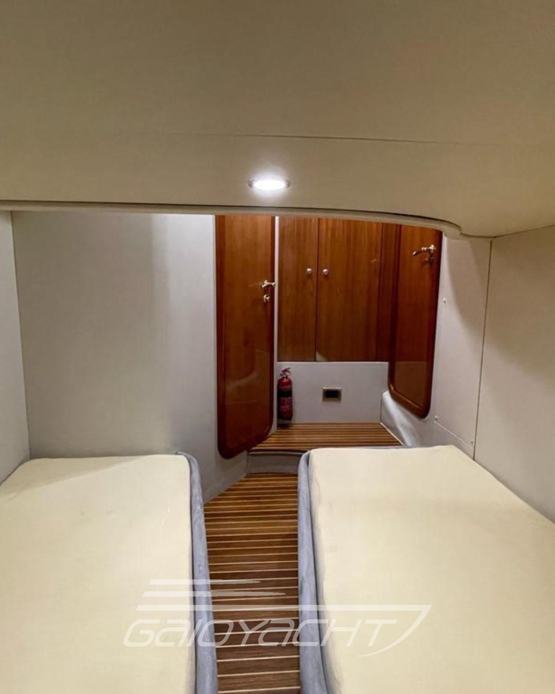 Alarme de pompe de cale, Couleur spéciale, Douche de cockpit, Phare de poursuite, Flaps hydrauliques, Indicateurs de flaps, Éclairage de courtoisie, Spots sous-marins, Passerelle, Plateforme arrière, Pompe de cale automatique, Porte latérale, Cockpit en teck, Prise de quai, Connexion eau sous pression à quai, Rollbar, Guindeau électrique, Echelle de bain, table de cockpit, Corne.