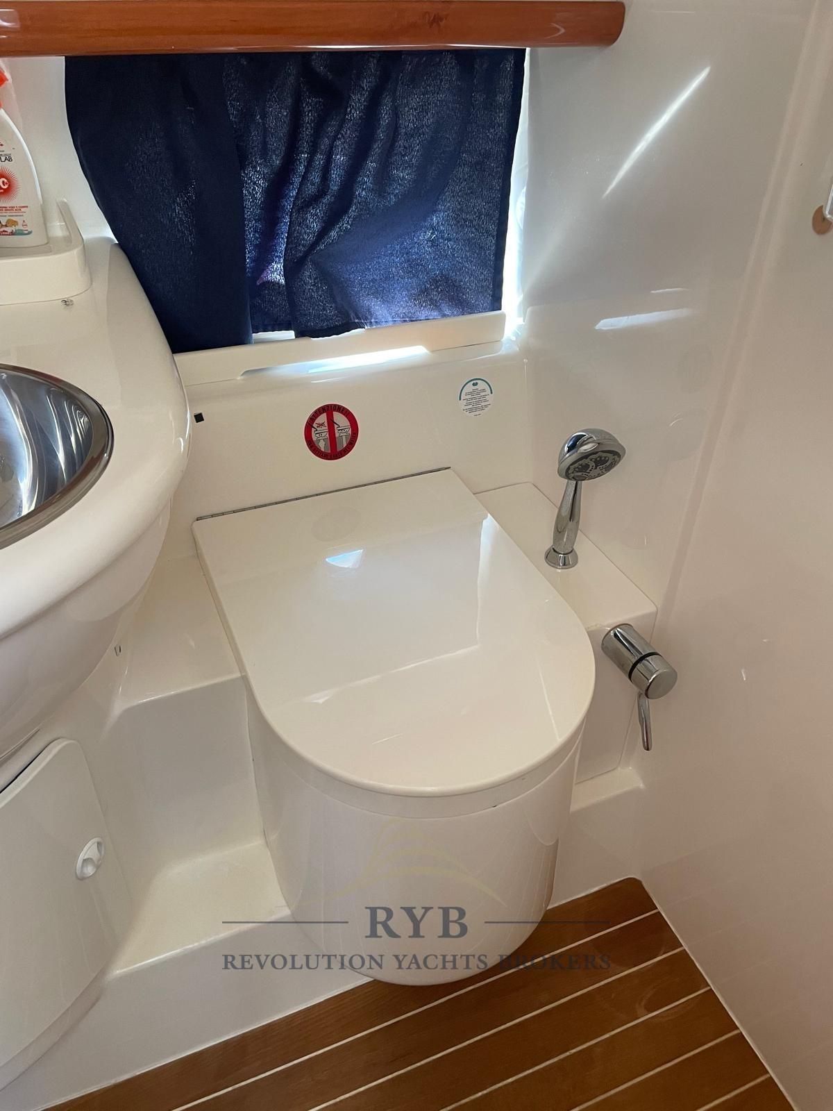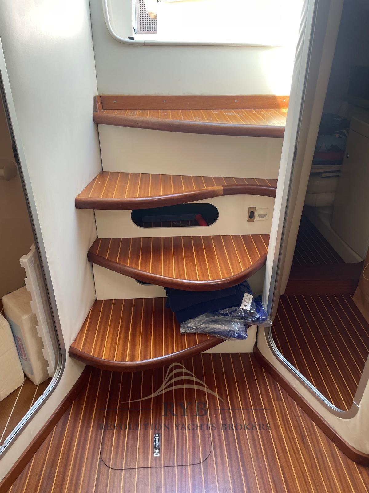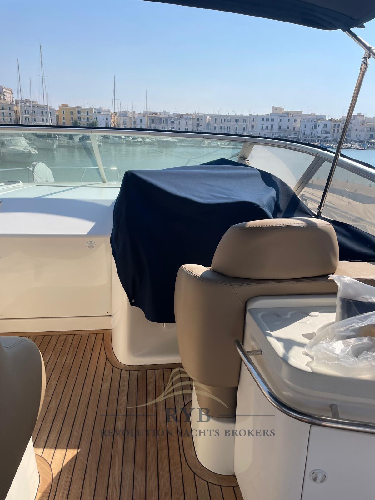 Eau sous pression, Douche de cockpit, Flaps électriques, Passerelle, Plateforme arrière, Porte latérale, Cockpit en teck, Prise de quai, Rollbar, Guindeau électrique, table de cockpit, Table pliante de salon.