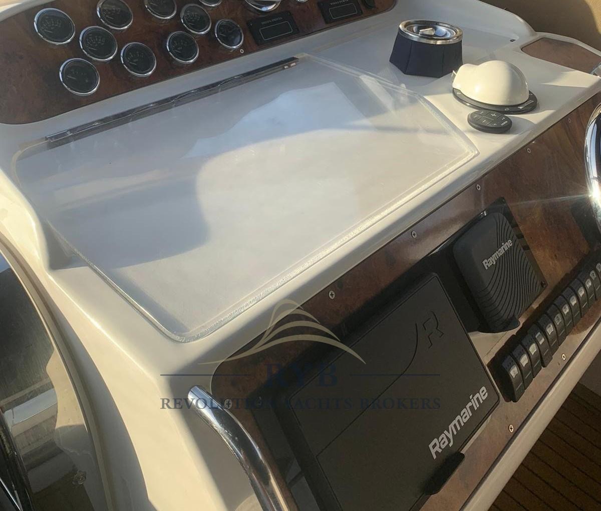 Couleur spéciale, Flaps hydrauliques, Lavabo dans le cockpit, Passerelle, Plateforme arrière, Pompe de cale automatique, Porte latérale, Cockpit en teck, Prise de quai, Rollbar, Guindeau électrique.
