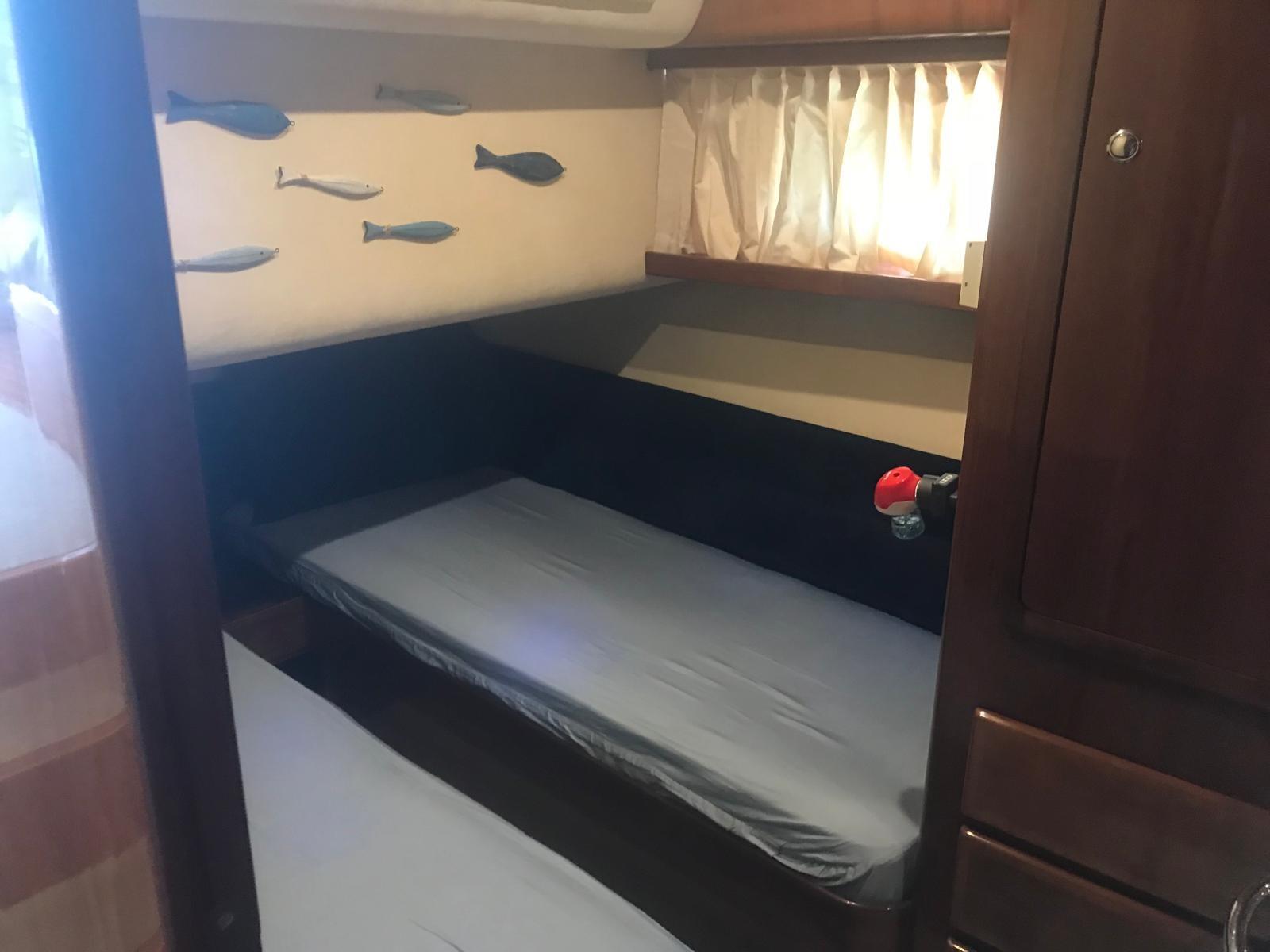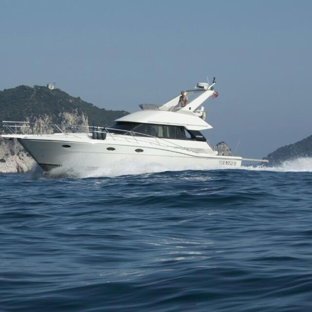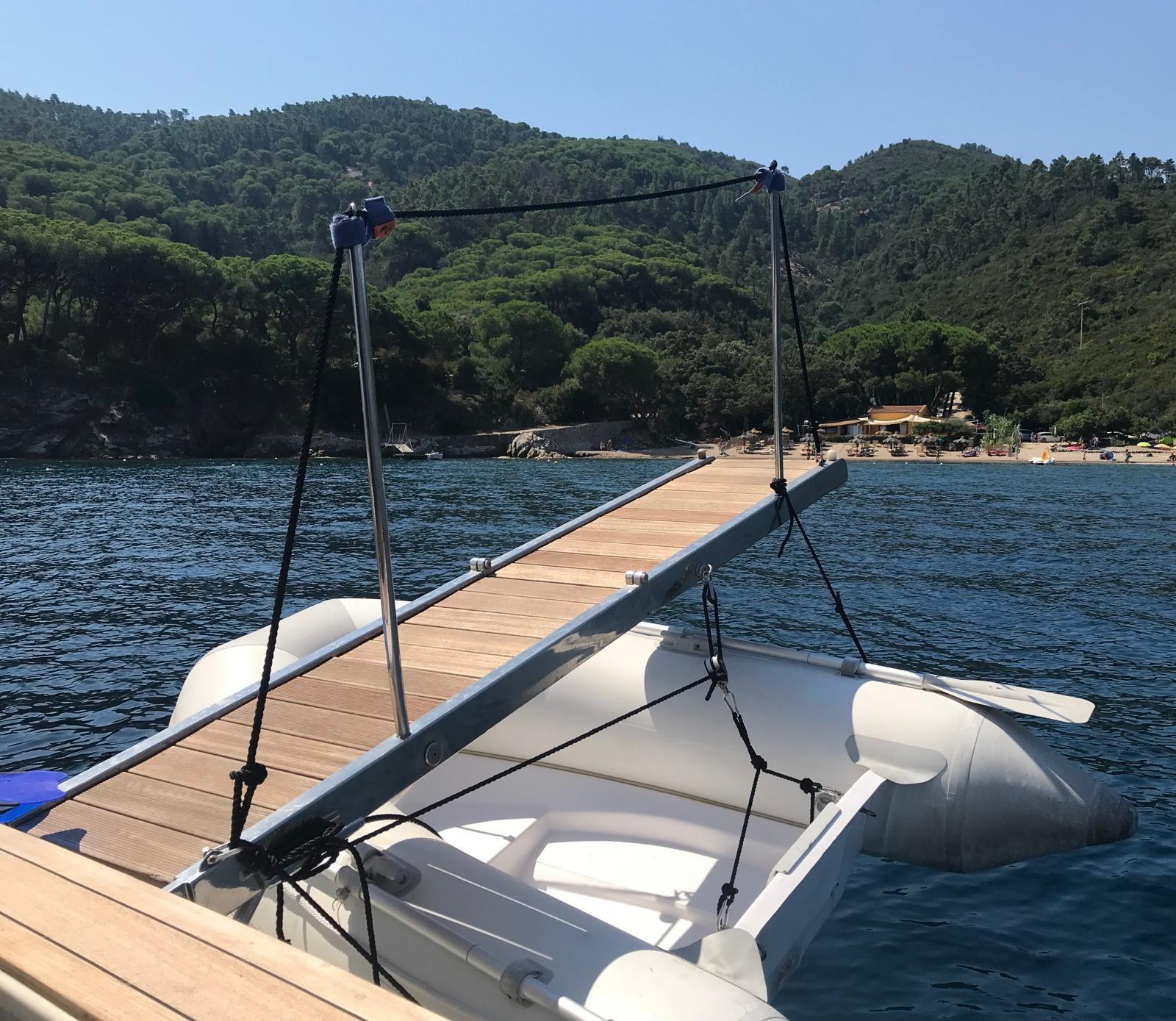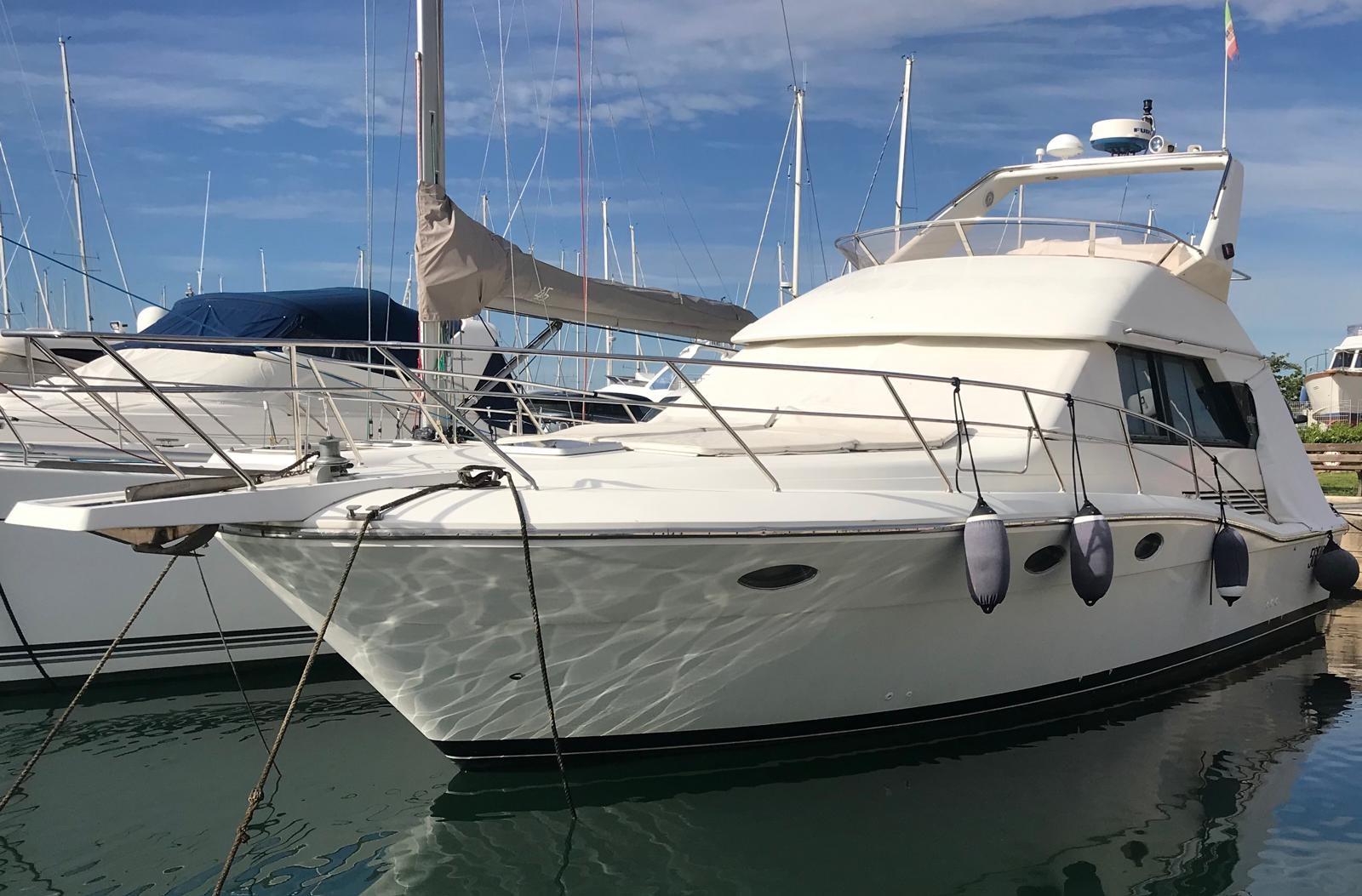 Alarme moteur, Eau sous pression, Douche de cockpit, Phare de poursuite, Flaps hydrauliques, Indicateurs de flaps, Passerelle, Plateforme arrière, Pompe de cale manuelle, Porte latérale, Prise de quai, Connexion eau sous pression à quai, Onduleur, Rollbar, Guindeau électrique (nuovo), Echelle de bain, Annexe (+ Honda 6 cv), Corne.