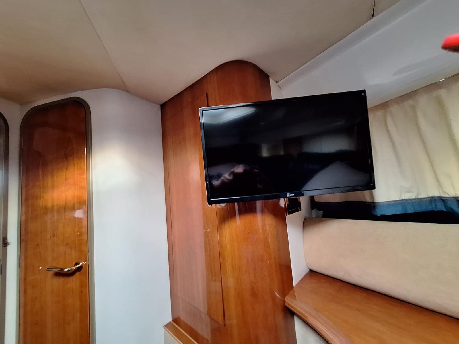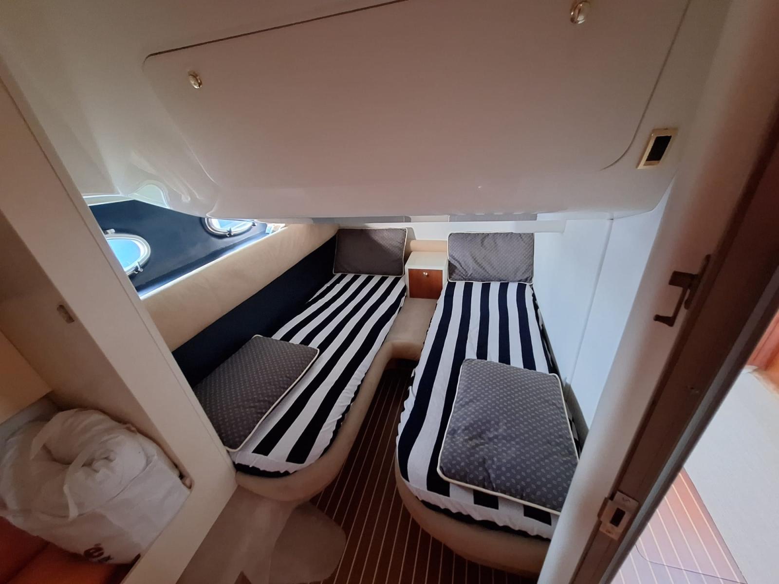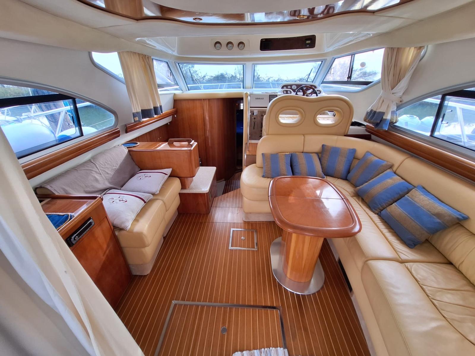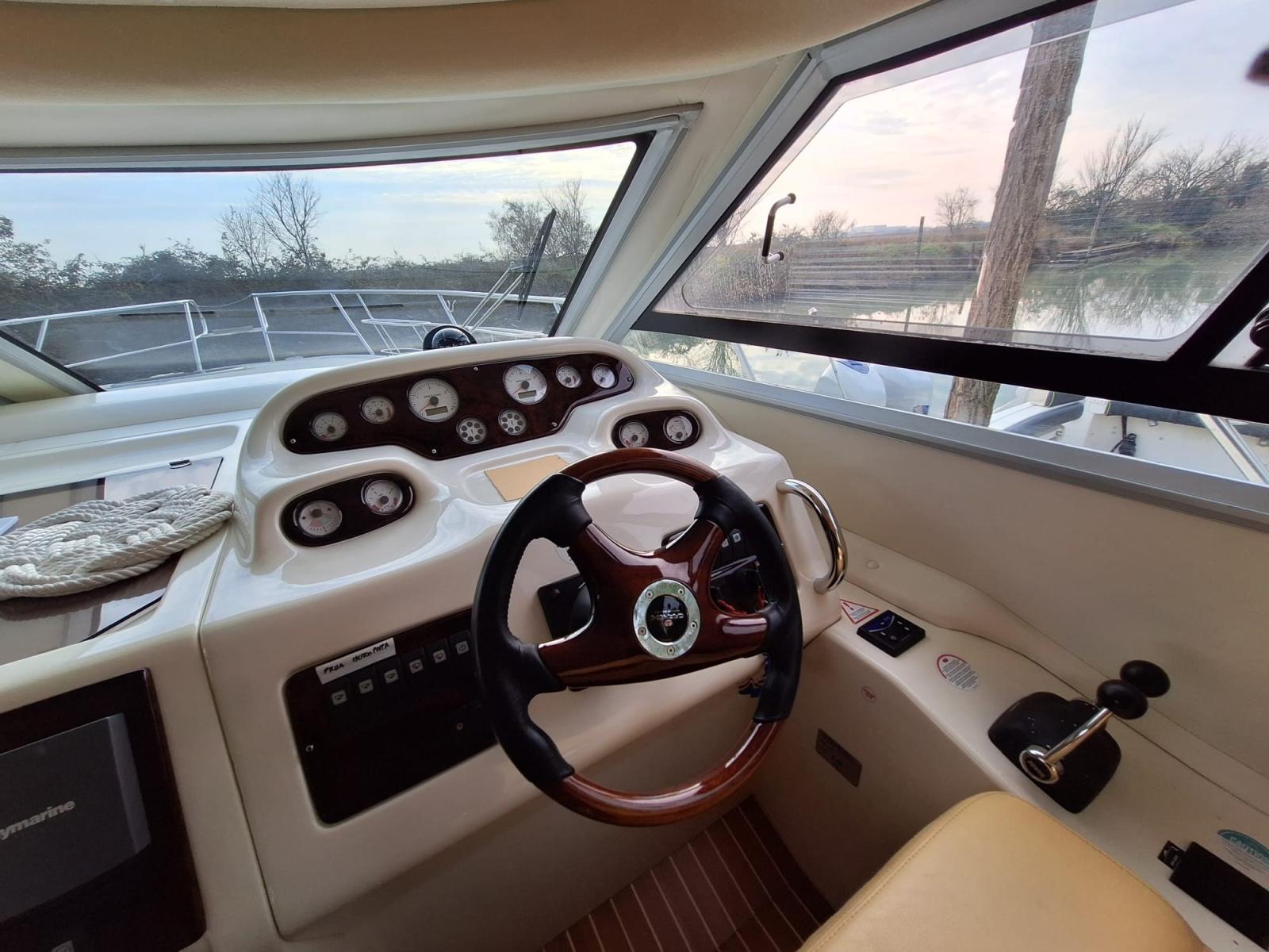 Alarme moteur, Alarme de pompe de cale, Eau sous pression, 4 Batteries, Chargeur de batterie (2024), Douche de cockpit, Phare de poursuite, 2 Flaps hydrauliques, Extincteur(s) fixe(s), Indicateurs de flaps, Éclairage de courtoisie, Spots sous-marins, Passerelle (Idraulica), Plateforme arrière, Pompe de cale automatique, Pompe de cale manuelle, Cockpit en teck, Prise de quai, Connexion eau sous pression à quai, Onduleur, Rollbar, Guindeau électrique, Echelle de bain, Système de filtration des eaux usées, Corne, Winch électrique arrière.