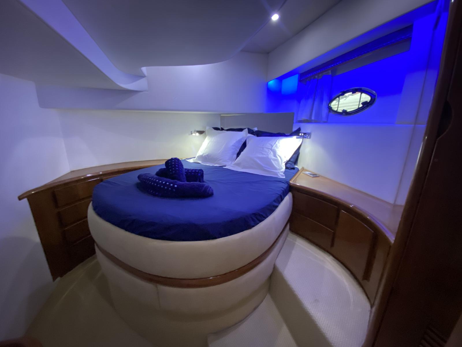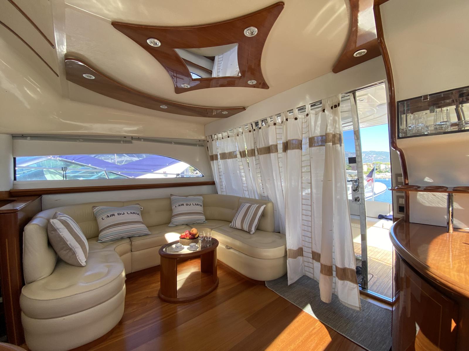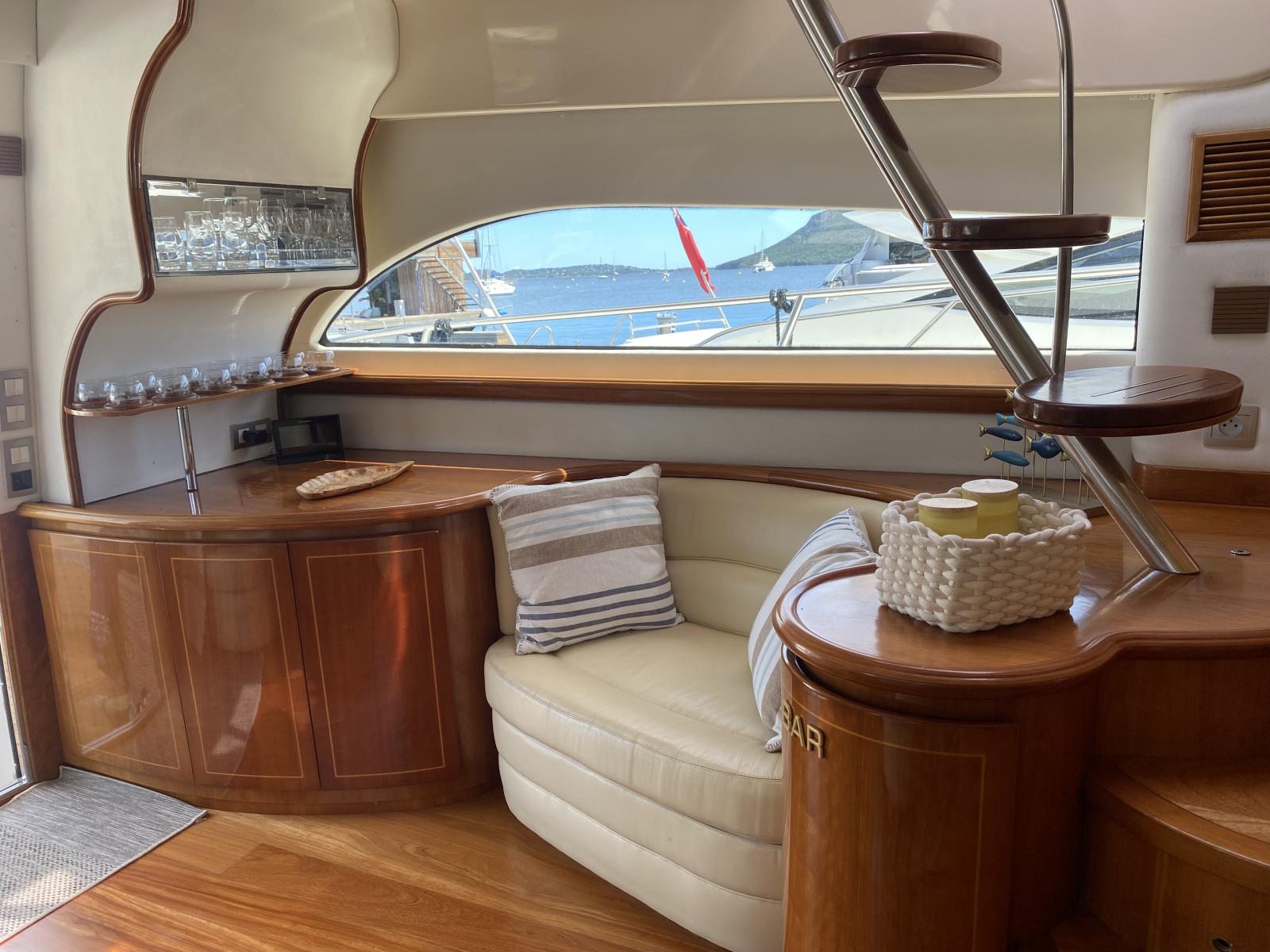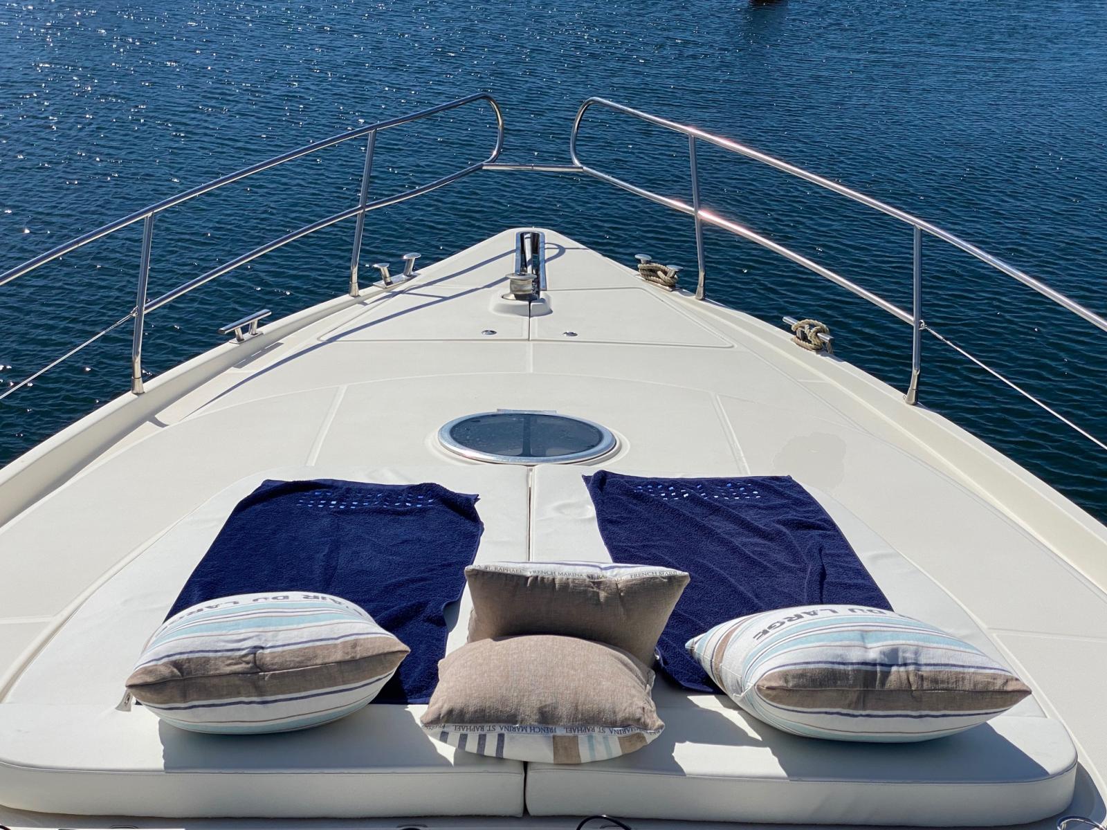 Le propriétaire actuel est un passionné, ayant consacré une année entière à lui redonner tout son éclat. Chaque détail a été soigné : sellerie du fly et bains de soleil refaits à neuf, bimini neuf, boiseries intérieures rénovées, batteries moteur et domestiques remplacées, tableau électrique remis à neuf… Rien n’a été laissé au hasard.