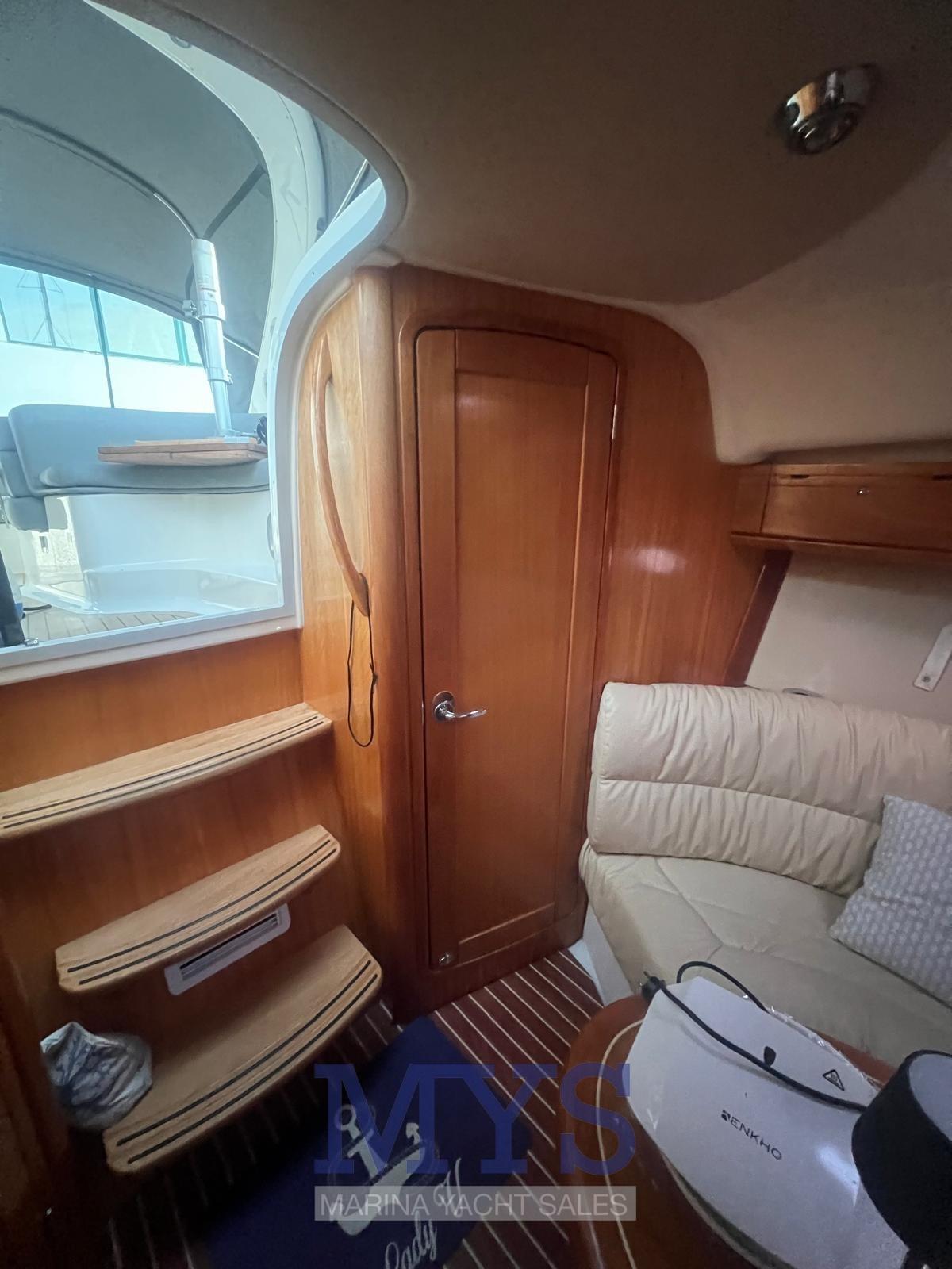 Alarme moteur, Alternateur, Ouverture du compartiment moteur électrique, Eau sous pression, Couleur spéciale, Douche de cockpit, Flaps hydrauliques, Extincteur(s) fixe(s), Indicateurs de flaps, Lavabo dans le cockpit, Éclairage de courtoisie, Spots sous-marins, Passerelle, Plateforme arrière, Pompe de cale automatique, Cockpit en teck, Prise de quai, Rollbar (ABBATTIBILE), Guindeau électrique, Echelle de bain, table de cockpit, Corne.