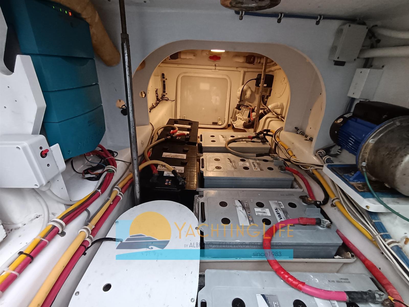 Alarme gaz, Alarme moteur, Alarme de pompe de cale, Eau sous pression, Douche de cockpit, Phares fixes arrière, Flaps hydrauliques, Hard top, Indicateurs de flaps, Lavabo dans le cockpit, Éclairage de courtoisie, Passerelle, Plateforme arrière, Pompe de cale automatique, Pompe de cale manuelle, Porte latérale, Prise de quai, Connexion eau sous pression à quai, Guindeau électrique, Echelle de bain.