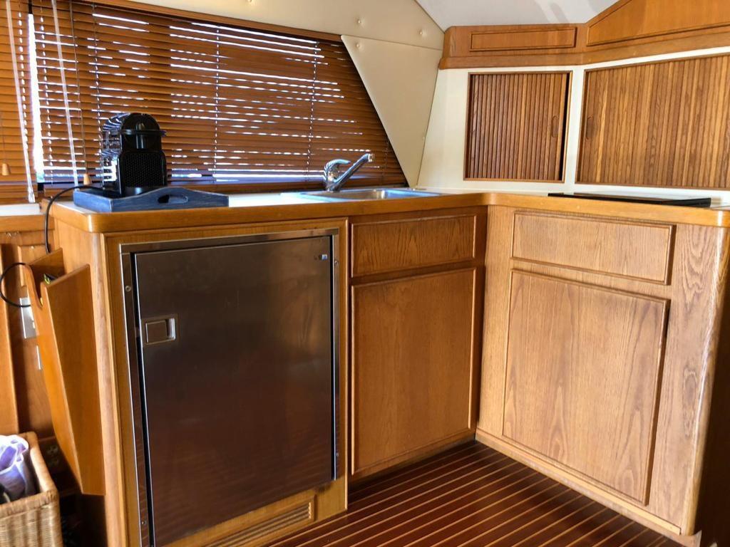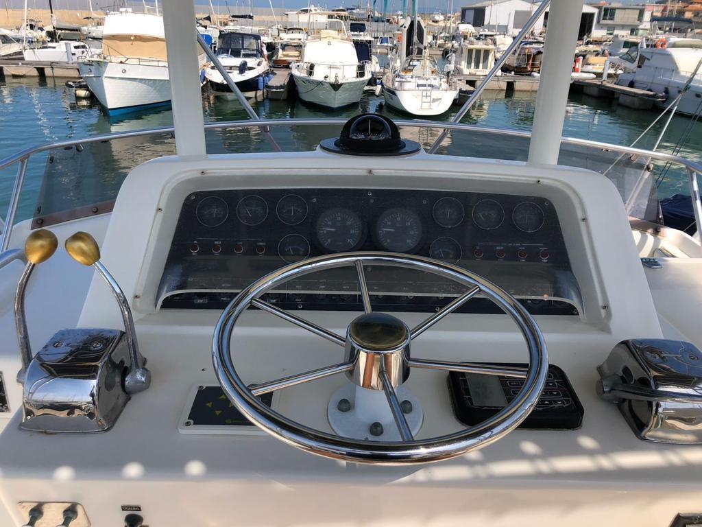 BERTRAM 37 CABRIOLET Construction 1987 immatriculation 1990 Moteurs 2 Caterpillar 3208 375 cv 300 heures à partir de la révision Réservoir d’eau 450 lt 70 mt Chaîne d’ancre galvanisée Système 220 volts, 120 volts et 12 volts Générateur 8 kw Pompes de cale automatiques 5 secteurs 4 chaises de directeur plus table pour cockpit arrière Annexe Honda 2,40 mt avec 2,3 cv Ancre de rechange Hélices de rechange Courroies et pièces de rechange Passerelle 2500 lt carburant Réfrigérateur et frizer Système d’éclairage LED interne 6 extincteurs plus système d’extinction d’incendie Toilettes avec cabine de douche séparée Climatisation Plate-forme de bain arrière Chaudière Coussins et hublots Prises 12 volts 220 prises 120 volts Stabilisateur de courant GPS VHF Radar Pilote automatique Stéréo Ttop Gyrophare de profondeur de mouche avec bimini et fermeture complète Réservoir d’eaux noires Volets hydrauliques chargeurs Manuel, documents et plans originaux Cabine propriétaire à l’avant avec grand lit double, climatisation et sol en teck Cabine d’invités au milieu du navire double avec lits superposés, climatisation et sol en teck Grande salle de bain avec WC électrique et cabine de douche séparée Grande dînette convertible avec meubles en teck, canapé en forme de « C », climatisation et sol en teck Cuisine au niveau avec grand plan de travail équipé de 2 réfrigérateurs, évier, four micro-ondes, grille-pain, machine à café à dosettes Armoire de cuisine extérieure Vaisselle et linge sur mesure, parquet en teck, salon et cabines. Guindeau électrique Douche de pont Pompe à eau de pont Échelle de bain double Éclairage nocturne lumières arrière et radeau