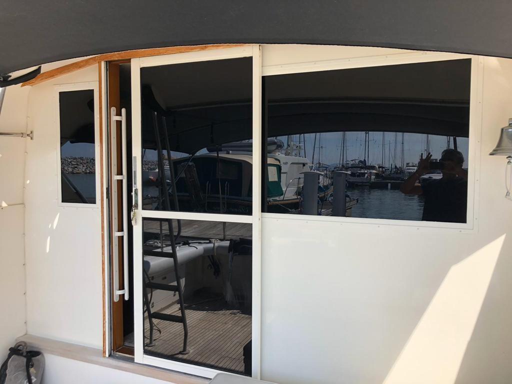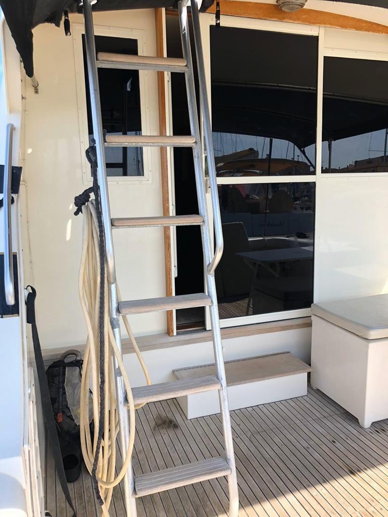 Eau sous pression, Douche de cockpit, Flaps hydrauliques, Plateforme arrière, Porte latérale, Prise de quai, Onduleur, Guindeau électrique, Echelle de bain, Annexe (Tender Honda 2,40 mt con 2,3 cv), T-Top.
