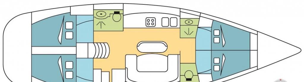4 cabines doubles, 2 salles de bains électriques + douche séparée