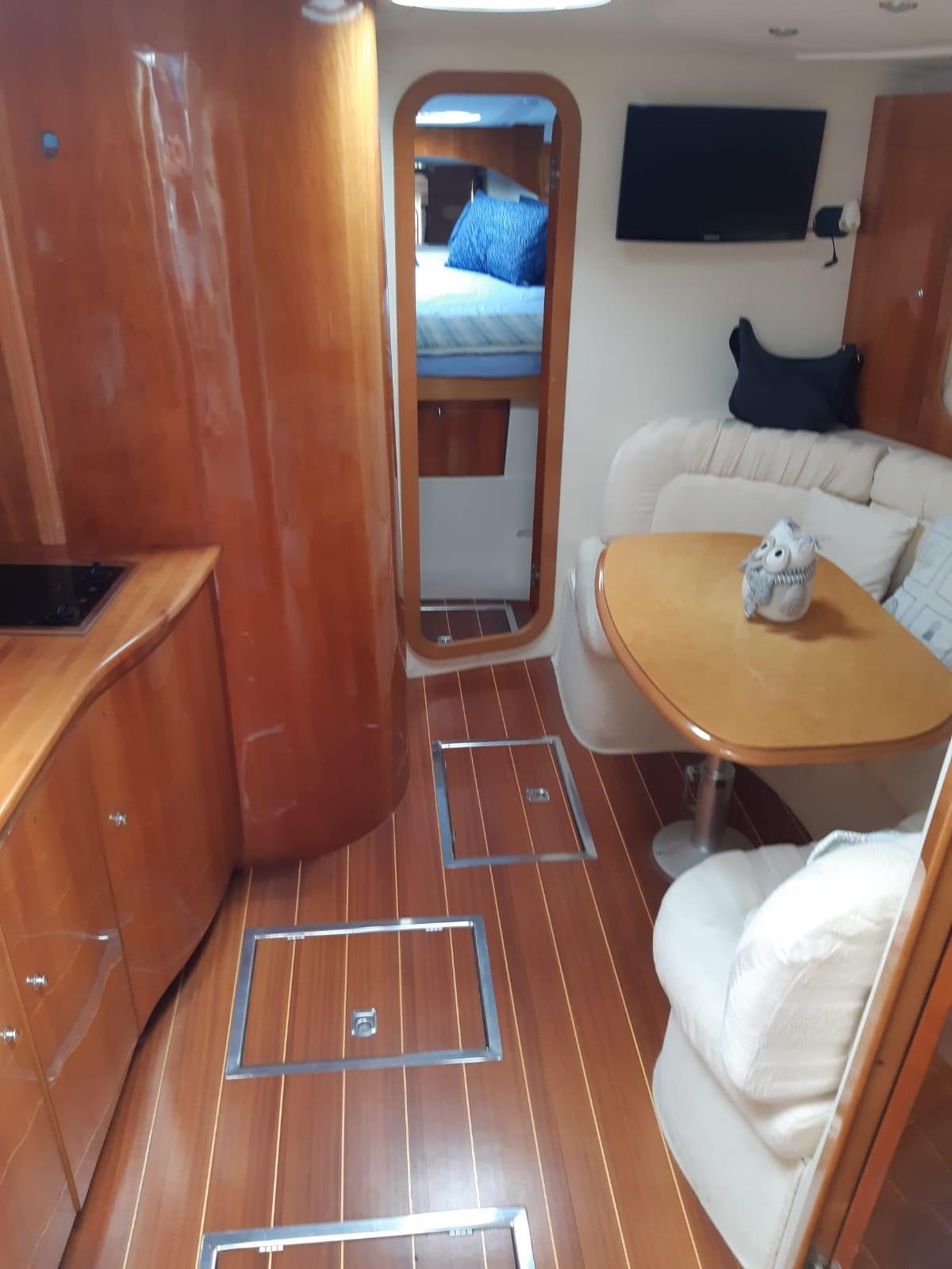 Alarme moteur, Eau sous pression, 4 Batteries, Douche de cockpit, Phare de poursuite, Flaps hydrauliques, Extincteur(s) fixe(s), Indicateurs de flaps, Lavage de chaine, Éclairage de courtoisie, Spots sous-marins, Passerelle (Idraulica), Plateforme arrière, Pompe de cale manuelle, Cockpit en teck, Prise de quai, Onduleur, Rollbar, Guindeau électrique, Echelle de bain, table de cockpit, Corne.