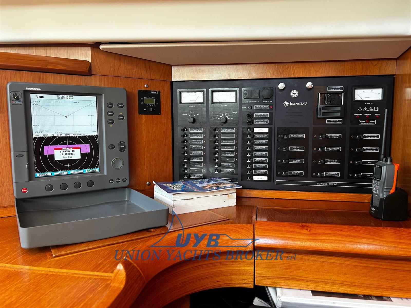 Eau sous pression, Passavant en teck, Douche de cockpit, Double barre à roue, Éclairage de courtoisie, Passerelle, Plateforme arrière (strutturale), Pompe de cale manuelle, Cockpit en teck, Connexion eau sous pression à quai, Guindeau électrique, Chaise support HB, table de cockpit.