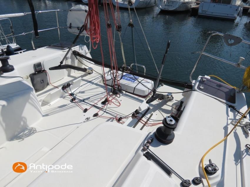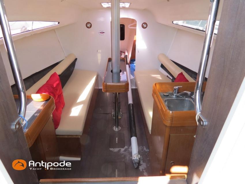 Sun Fast 3200, 2009, YANMAR 2YM15, 15 cv (828 h), Equipets et portes textiles, Selleries carré skaï, 2 Toiles anti roulis dans le carré, 2 winchs sur roof pour réglages et manoeuvres - Harken 40ST, Delphinière inox, Cockpit modifié type R2, Capote de roof - SNA 2017, Davier amovible, Gréement dormant câble Dyform (remplacé 2021), Toutes les drisses remplacées en 2022, GV All Purpose TRILAM® DYNEEMA® / BLACK TECHNORA® 2023, GV triradiale Technique Voiles 2015, Taud de grand voile - SNA 2017, Génois membrane black Technora Europ Sails 2015, Génois mylar Technique Voile - révisé 2019, ORC dacron Technique Voiles, Tourmentin, Tangon carbone, 2 x Spinnakers triradiaux classiques - Technique Voile, Code 0 sur emmagasineur - Technique Voile, Emmagasineur Profurl Nex 1.5, Pataras textile, Pack NKE Gyro 3 Carbone avec double multidisplay pied de mat et 2 gyrographics dans le cockpit - 2022 posé par TEEM Lorient, Vérin in board Raymarine, Centrale de secours Raymarine X10 en mode compas (même vérin que la centrale NKE) + télécommande sans fil S100 (2015), Télécommande sans fil pour centrale NKE, Transpondeur AIS (émetteur récepteur) - Icom Ma-510TR (2022), VHF ASN à la table à carte - Navicom RT550, Interface PC / NKE (sans PC fournis), Unité réfrigérante 12 V ouverture par le dessus (groupe froid remplacé 2014), Chauffe-eau 220 V (2015), Eau chaude et froide sous pression, Prise de quai 220 V + rallonge de quai + chargeur de batteries, Batteries service - 2 x 70Ah, Prises intérieures USB et 220 V, WC marin (pompe remplacée en 2019), Panneau solaire sur roof et régulateur MPPT Victron, Pompe à pied eau de mer, Feux de navigations à Leds, Radeau de survie Bombard Offshore 6 personnes (prochaine révision Avril 2026), Mouillage principal ancre Fob + 20m de chaine (2018) + cordage plombé, Amarres et défenses, Jamais transaté, jamais loué, Visible Bretagne. Pour plus d'informations ou pour fixer un rendez-vous de visite, contact : Jean-Baptiste Lemaire 06 10 25 00 03 - [email protected]