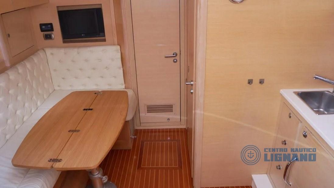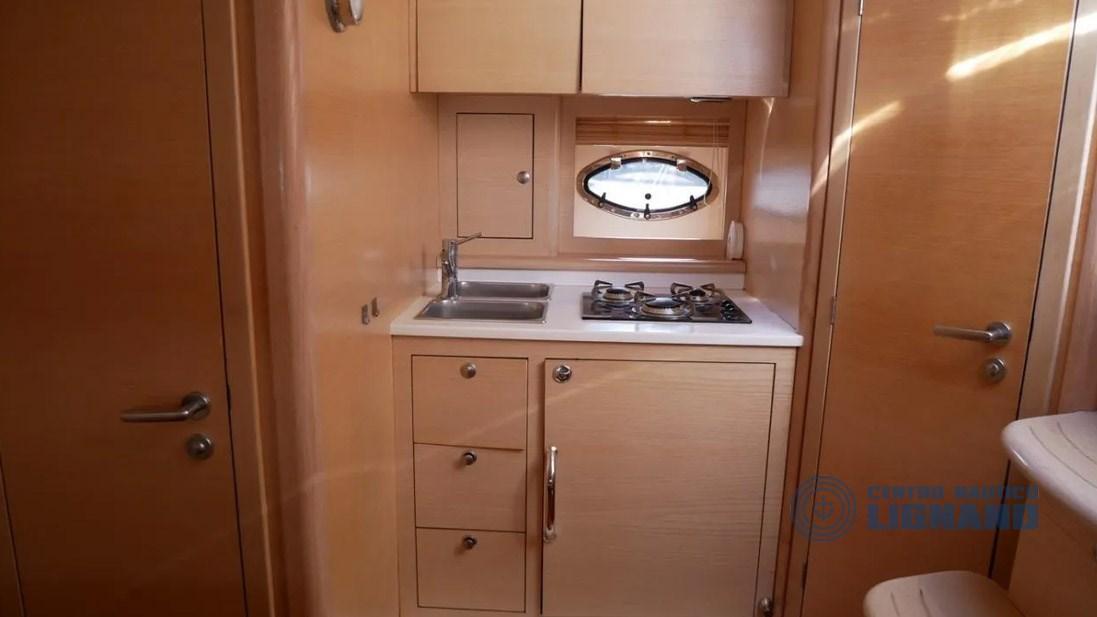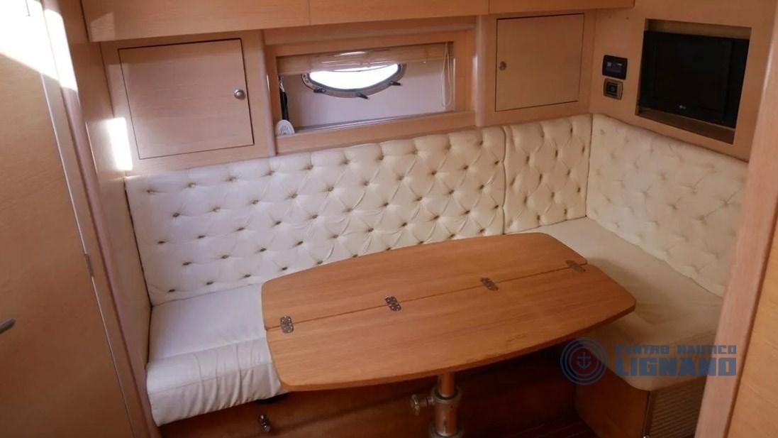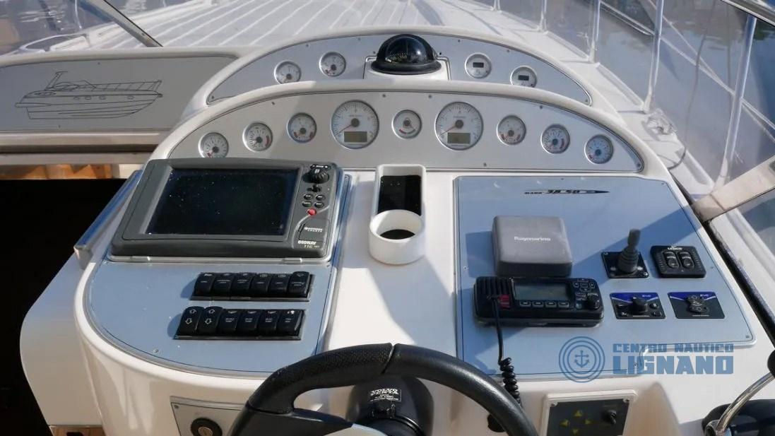 Equipé de nombreux accessoires tels que : climatisation, propulseur d’étrave, commandes électroniques, volets, indicateur de barre, garage annexe, guindeau électrique, réfrigérateur, traceur de cartes GPS et profondimètre, radio VHF, 12V et 220V, chargeur de batterie, câble, toilette électrique avec réservoir, télévision, chaîne stéréo et haut-parleurs, passerelle hydraulique, cockpit en teck, cuisine intérieure avec 3 brûleurs et évier, serviettes de camping-car, Mains courantes surdimensionnées pour échelle de mer, bar extérieur, 2 cabines d’invités doubles ou lits jumeaux.