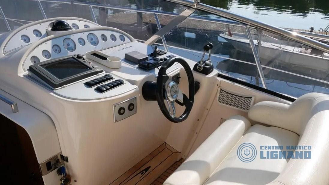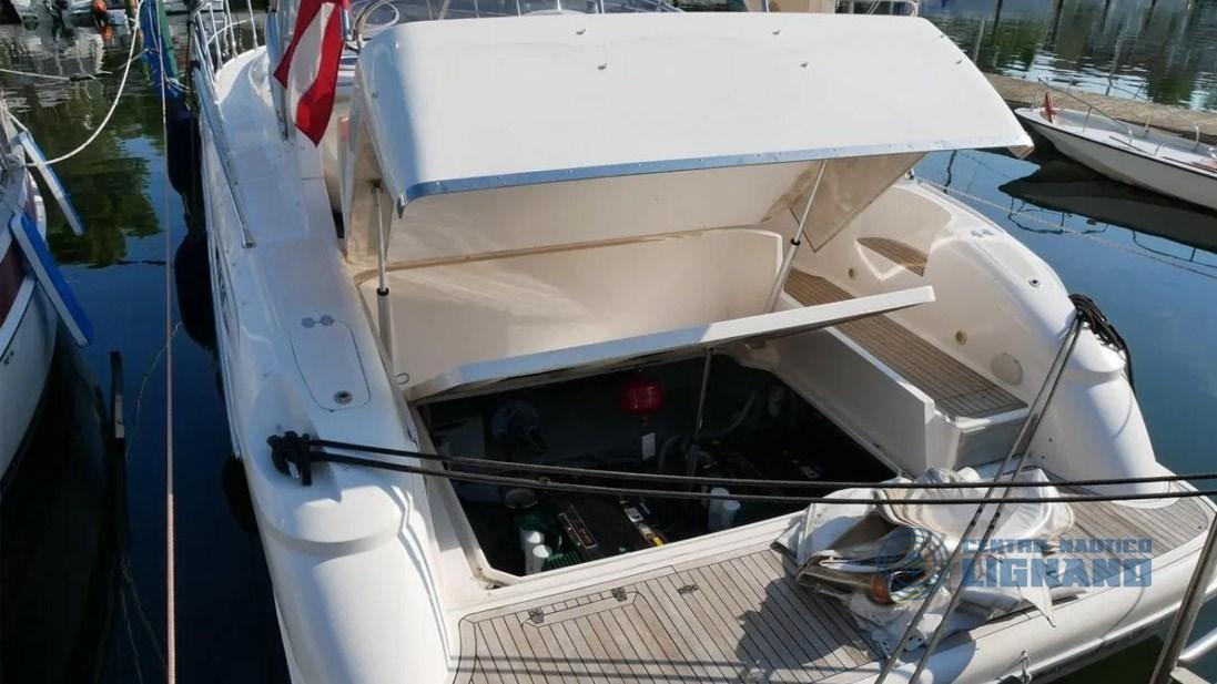 2 Alarme moteur, Alarme de pompe de cale, Ouverture du compartiment moteur électrique, Eau sous pression, 4 Batteries, Douche de cockpit, 2 Flaps hydrauliques, Extincteur(s) fixe(s), 2 Indicateurs de flaps, Passerelle, Pompe de cale manuelle, Porte latérale, Cockpit en teck, Prise de quai, Guindeau électrique, Echelle de bain, table de cockpit, Corne, T-Top.