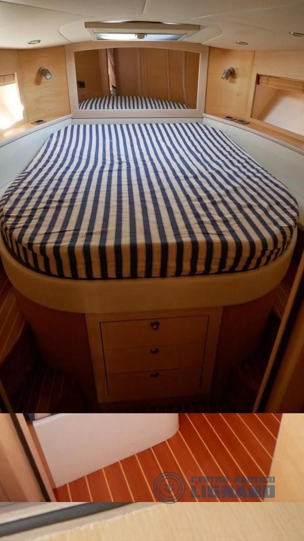 Yacht à moteur italien Manò Marine 38.50 Hard Top avec 2 moteurs diesel Volvo Penta D4-260 efb, construit en 2008, version 3 cabines, longueur 12 m et largeur 4,10 m, tirant d’eau 0,90.