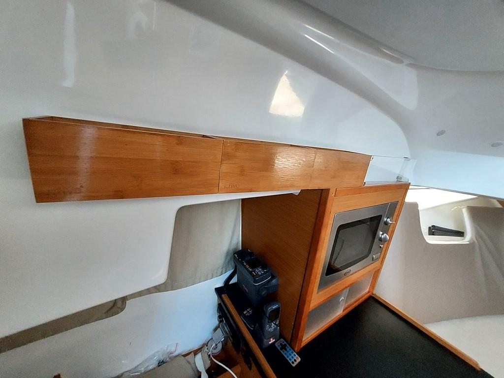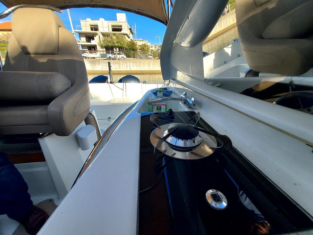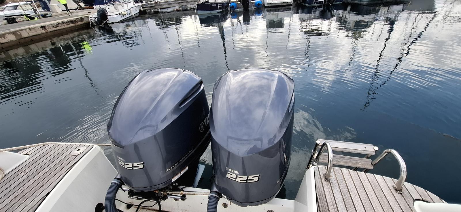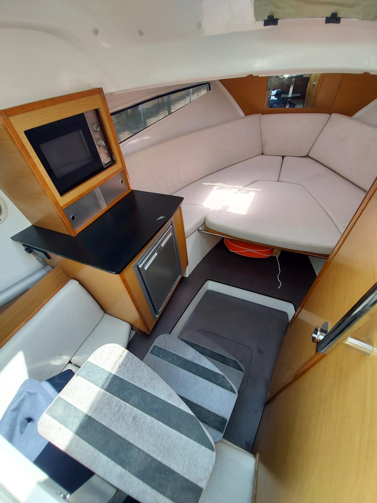 Ideal pour les croisières côtières ou les sports nautique , unité polyvalente conviendra très bien pour madame grâce à son immense bain de soleil avant et sont confort en partie cockpit il bénéficie aussi d'un bain de soleil arrière.