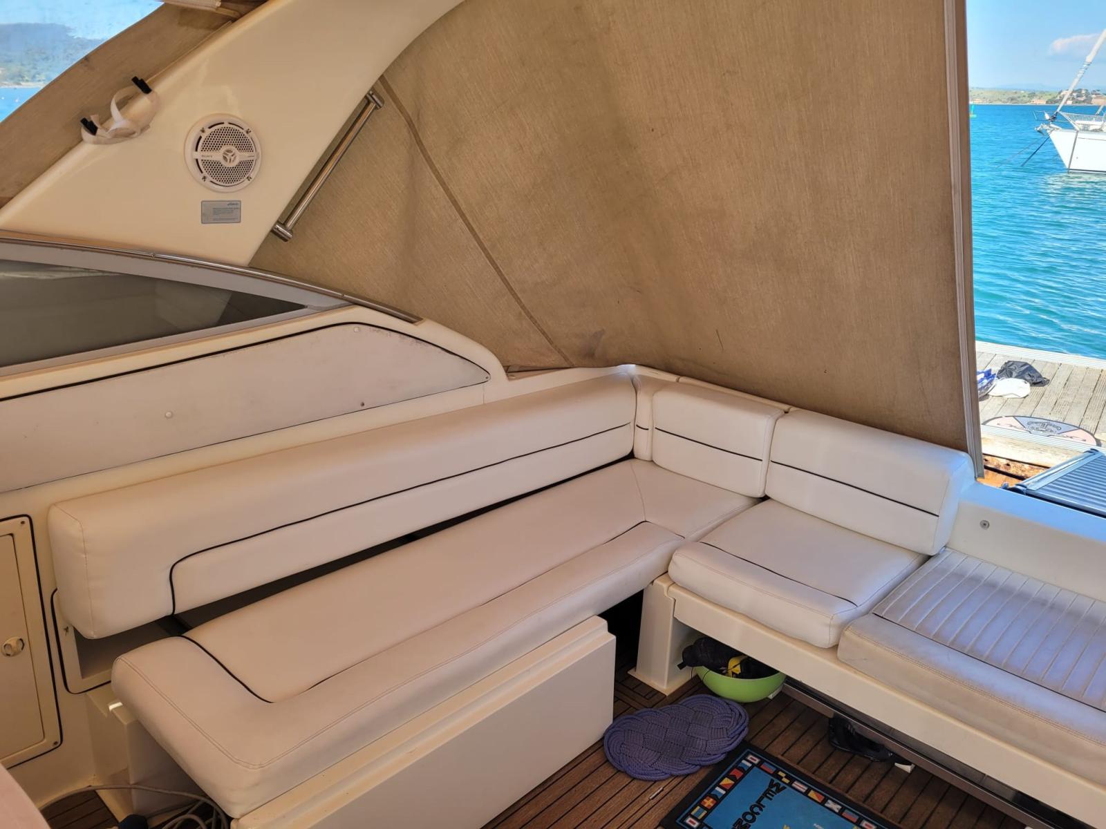 FIART 40 Open Mediterranean aux lignes pures avec un pont avant très grand et épuré, ainsi qu’un pare-brise aux formes acérées.
